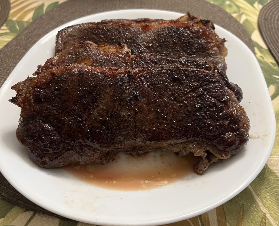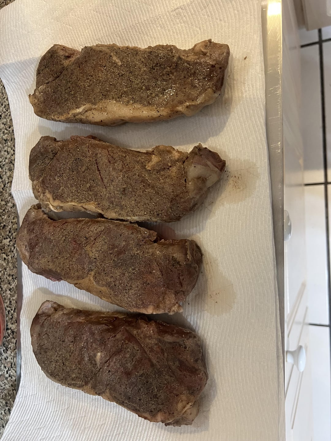AZ_85016 10 months ago Real nice! Next time, try the Strips at 128. Then sear 1 maybe 2 minutes per side max. And, Excellent choice on the wine!