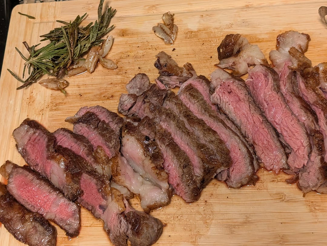 For everything else that I prefer medium rare (assuming you’re doing a reverse sear), I pull it at 120, sear it in a screaming hot pan, top it with salt/pepper, garlic, butter, and rosemary, and let it rest for 15-20 minutes.