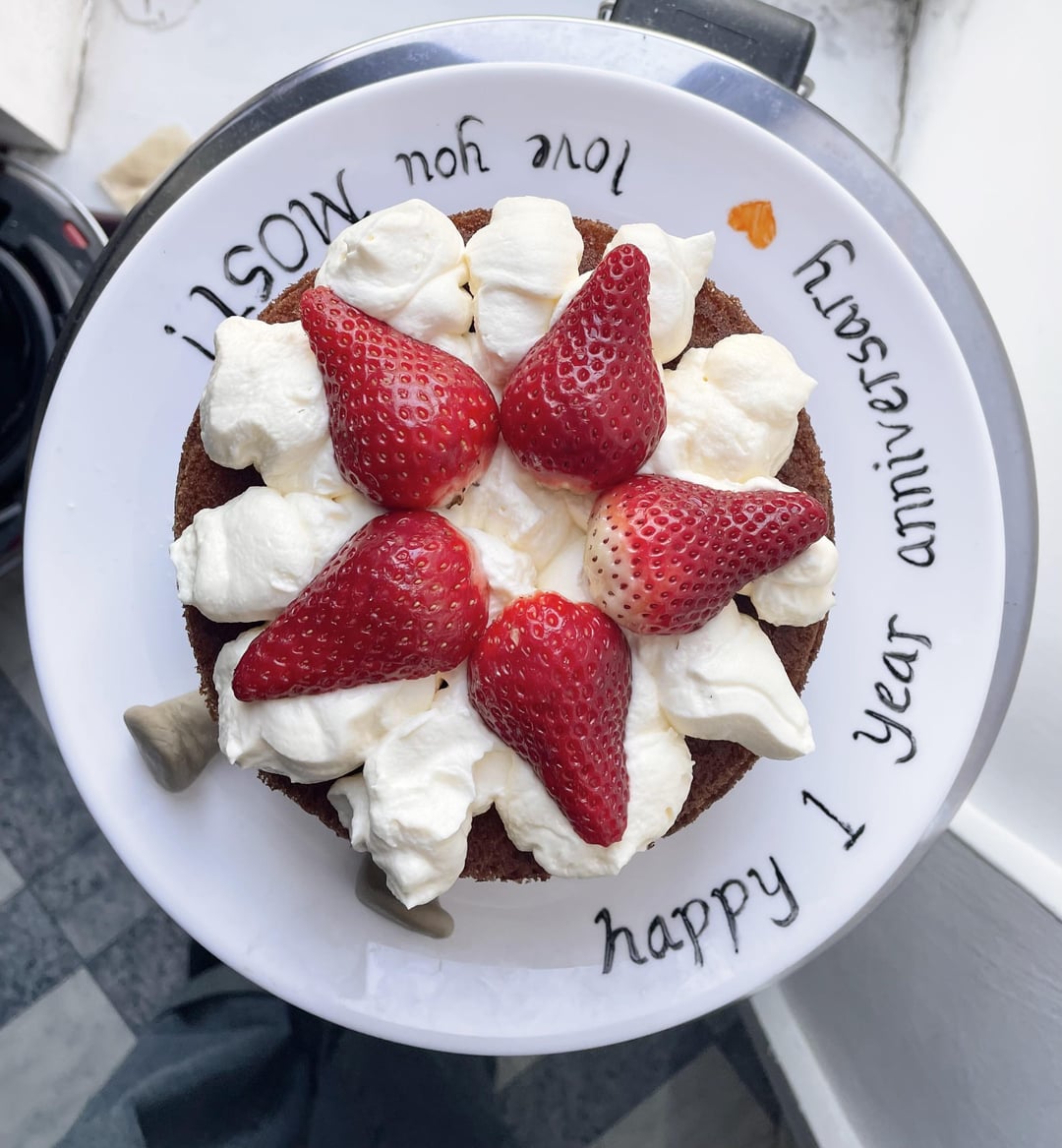 I made the jelly cat cake for my s/o for our 1 year! 🙂 excuse the messy whipped cream, I forgot to buy the pipette things so I just used a ziplock bag and made do.