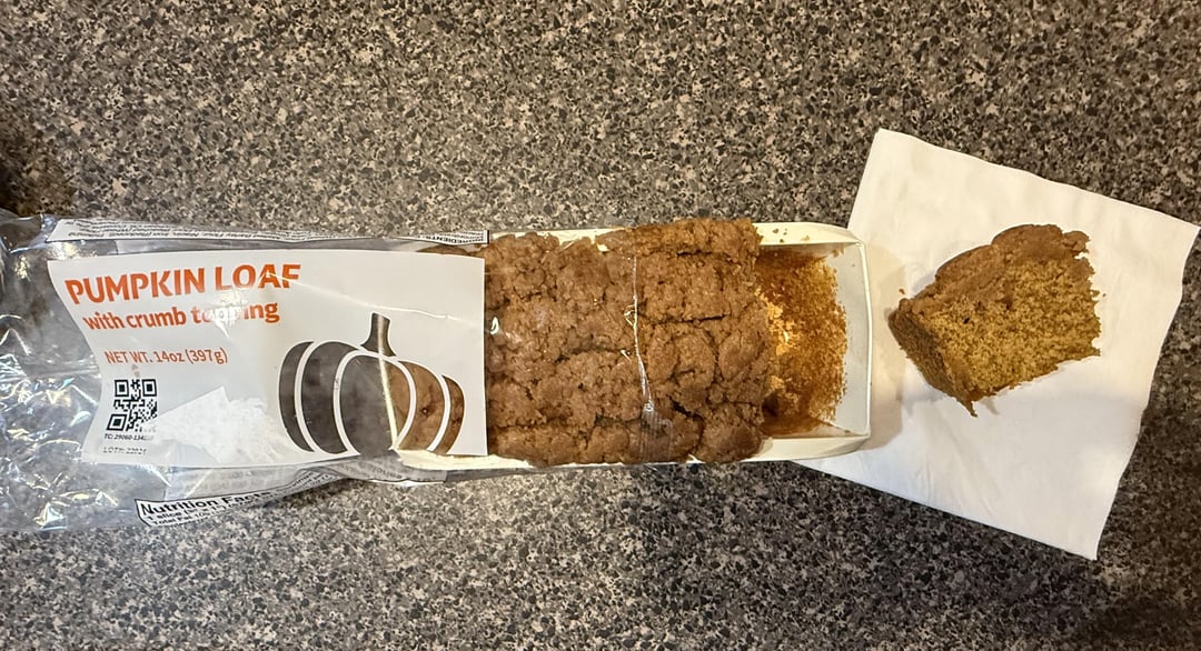 The pumpkin flavor was okay but it was just soooo dry!! The crumble topping wasn’t good either. This was just so dense and dry. I was a bit disappointed cause the pumpkin chocolate chip muffins are so good! I got them a few times to freeze and enjoy after pumpkin season and they’ve defrosted fine and taste great. But these are a definite pass.