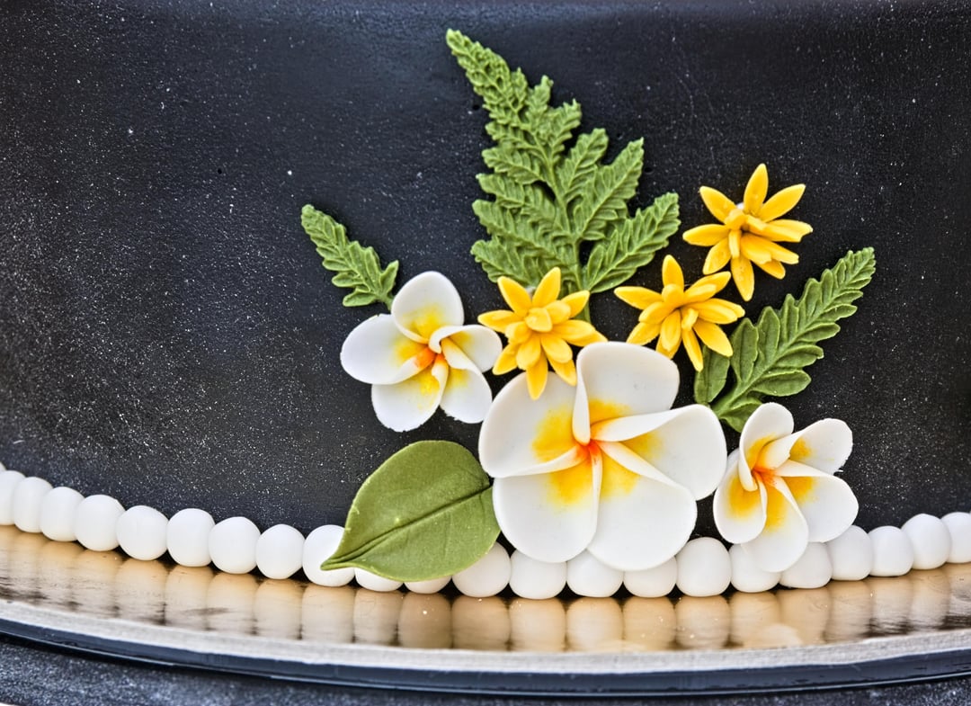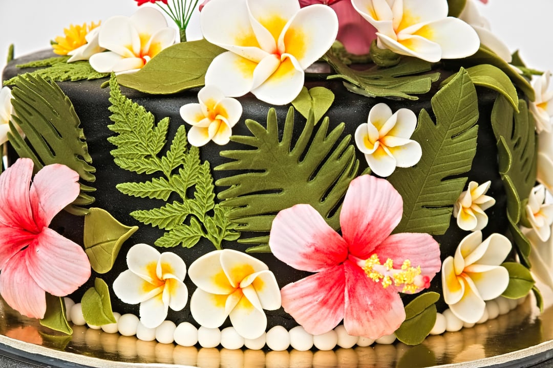 The flowers and leaves look very pretty! A little tip for getting rid of the “dusty” look on the fondant (I assume it’s cornstarch or powdered sugar from rolling it out): get an edible glaze spray! You can spray it on before the decorating and it’ll make the fondant surface nice and dust free!