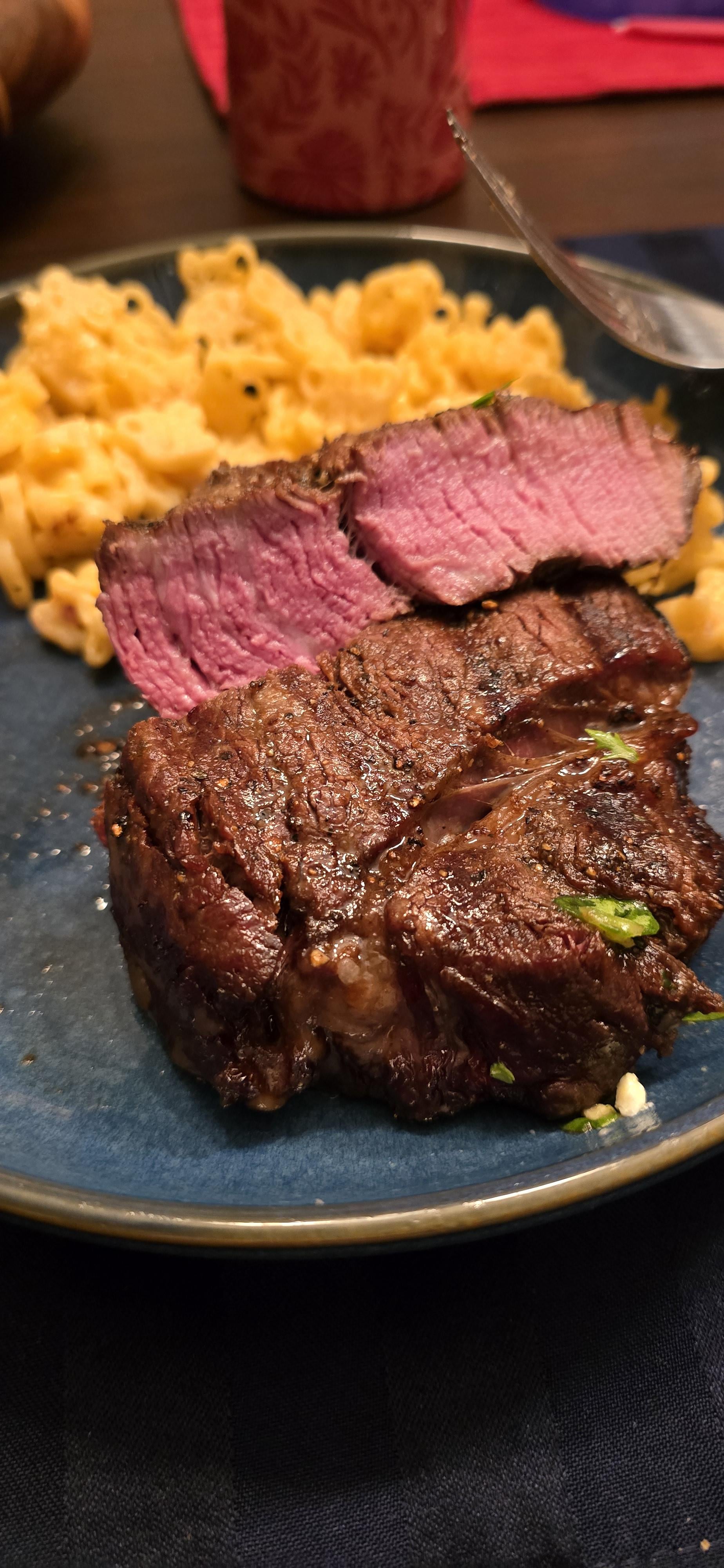 Buttery texture and oh so good. Fancy Mickey mac and cheese to compliment.by HTownFLguy 13 Comments MF_Marshall 10 months ago Always great to hit one out of the park for your better half. Right on!!! StormEWeathers 10 months ago I’d say it’s medium actually Realistic-Fact-2584 10 months ago Perfection spkoller2 10 months ago Yup, steak is a home meal now thomas1126 10 months ago Home run BlackAsP1tch 10 months ago She’s just trying to get in your pants don’t listen to her GGFrostKaiser 10 months ago Nothing better than cooking food for someone, and that person loving it! rosemarymegi 10 months ago I need to block this sub, the steaks I see here always make me so fucking hungry and craving them. I need a good goddamn steak to eat. I’ll never actually block it, of course. Love seeing these pics. 404-skill_not_found 10 months ago My wife became vegan hackdevil 10 months ago First time id be excited to eat a medium steak if I’m being honest Nomad2k 10 months ago What’d ya cook it on? Delightful_Helper 10 months ago It looks perfect Haldbakedarob8 10 months ago SmashWrite A CommentYou must be logged in to post a comment.