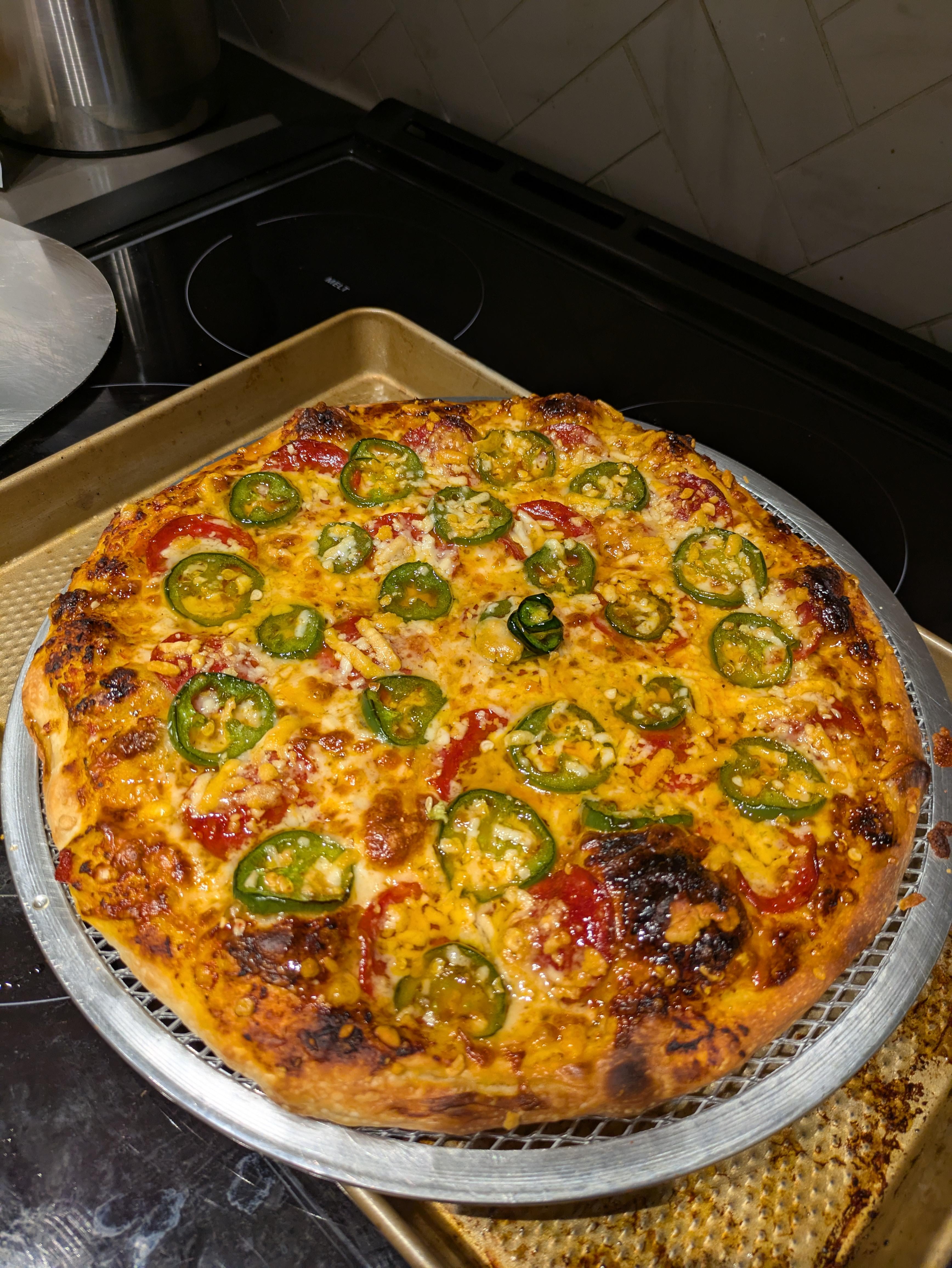 Tomato base, mozzarella, pepperoni, parmagiano-reggiano, jalapenos, pecorino romano and jalapeno infused hot honey drizzleby Zeekish_Dolphin 7 Comments BlackMarbl3 6 months ago Looks great!. raffman 6 months ago Damn! That’s a good looking pie! How did the underside look like? Mobile_Aioli_6252 6 months ago Absolutely perfect 👌 reddawg95 6 months ago Japerroni is my jam! Looks yumm Gvanaco 6 months ago Looks delicious Twinkles66 6 months ago Beautiful Agitated_Sock_311 6 months ago Gorgeous! I love my steel!Write A CommentYou must be logged in to post a comment.