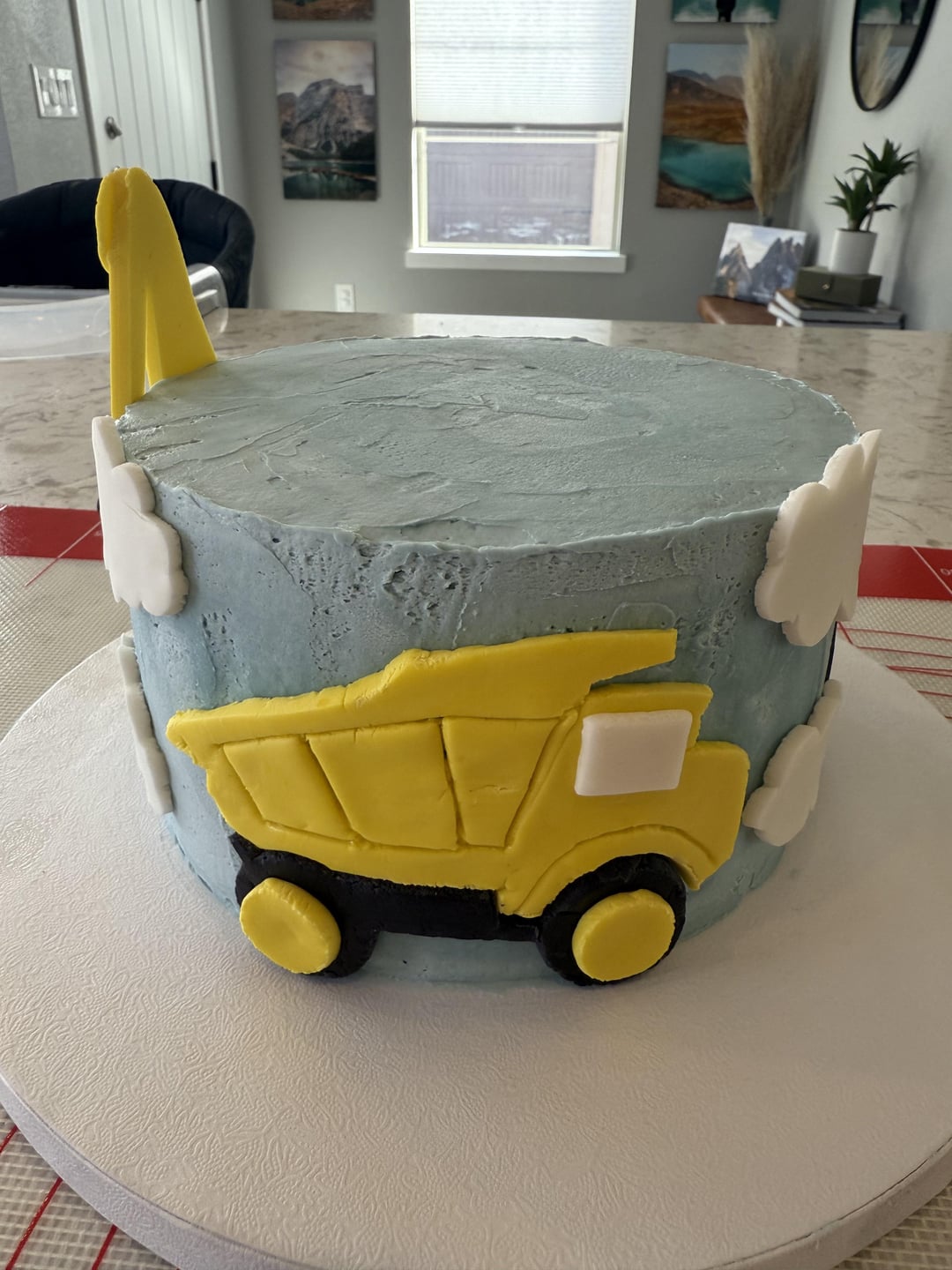 Looking for some advice & critique for this cake! I am going to be making a cake for my son’s birthday in a month — I’ve literally never made or decorated a cake before, so I decided to do a run through on a test cake before the real thing. It’s made with buttercream frosting & I made my own fondant.