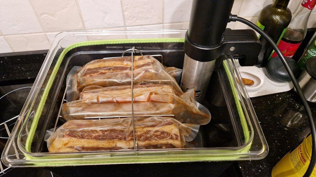 Only thing I might be concerned about (and it could be a non-issue based on the fact that I can’t see everything from the picture) is the ability for water to freely circulate throughout everything in between the different bags of meat. It looks like they’re kind of pushed a little tight together there.