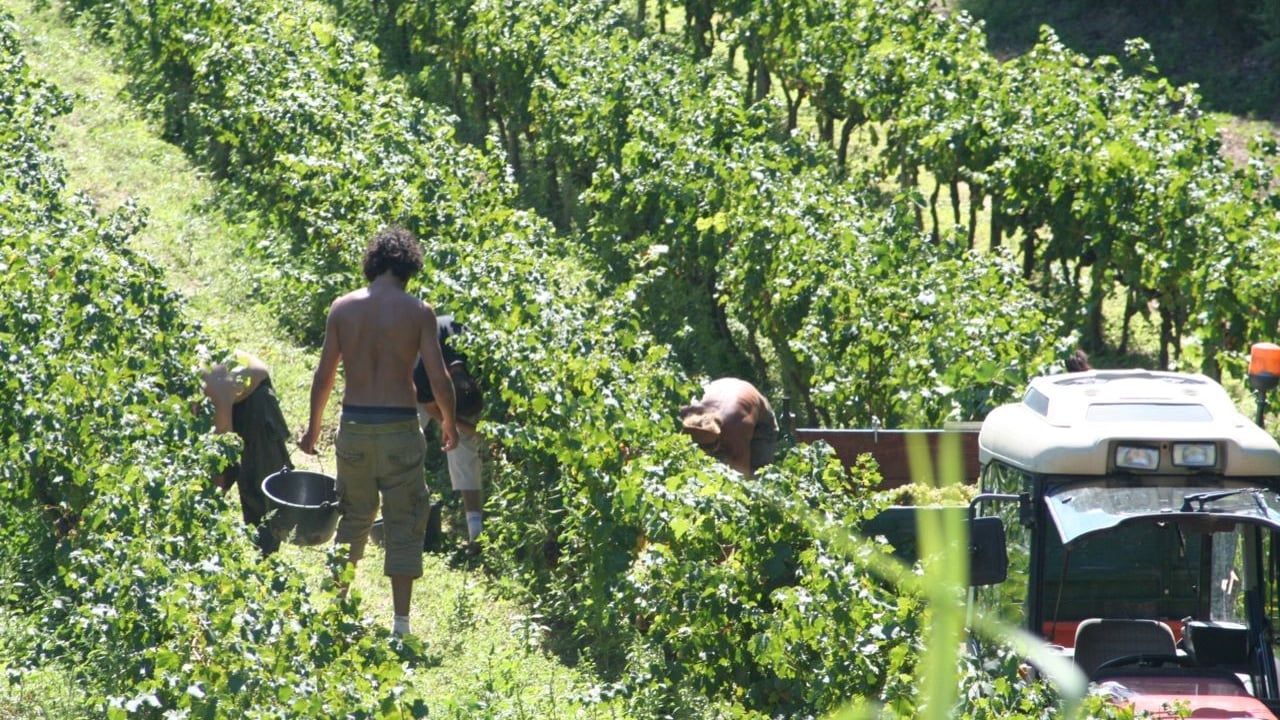 Men hand-pick wine grapes from rows of vines in a vineyard in the French wine region of the Vaucluse Sept. 8, 2008. (Steven Verbruggen/Flickr via Wikimedia Commons)