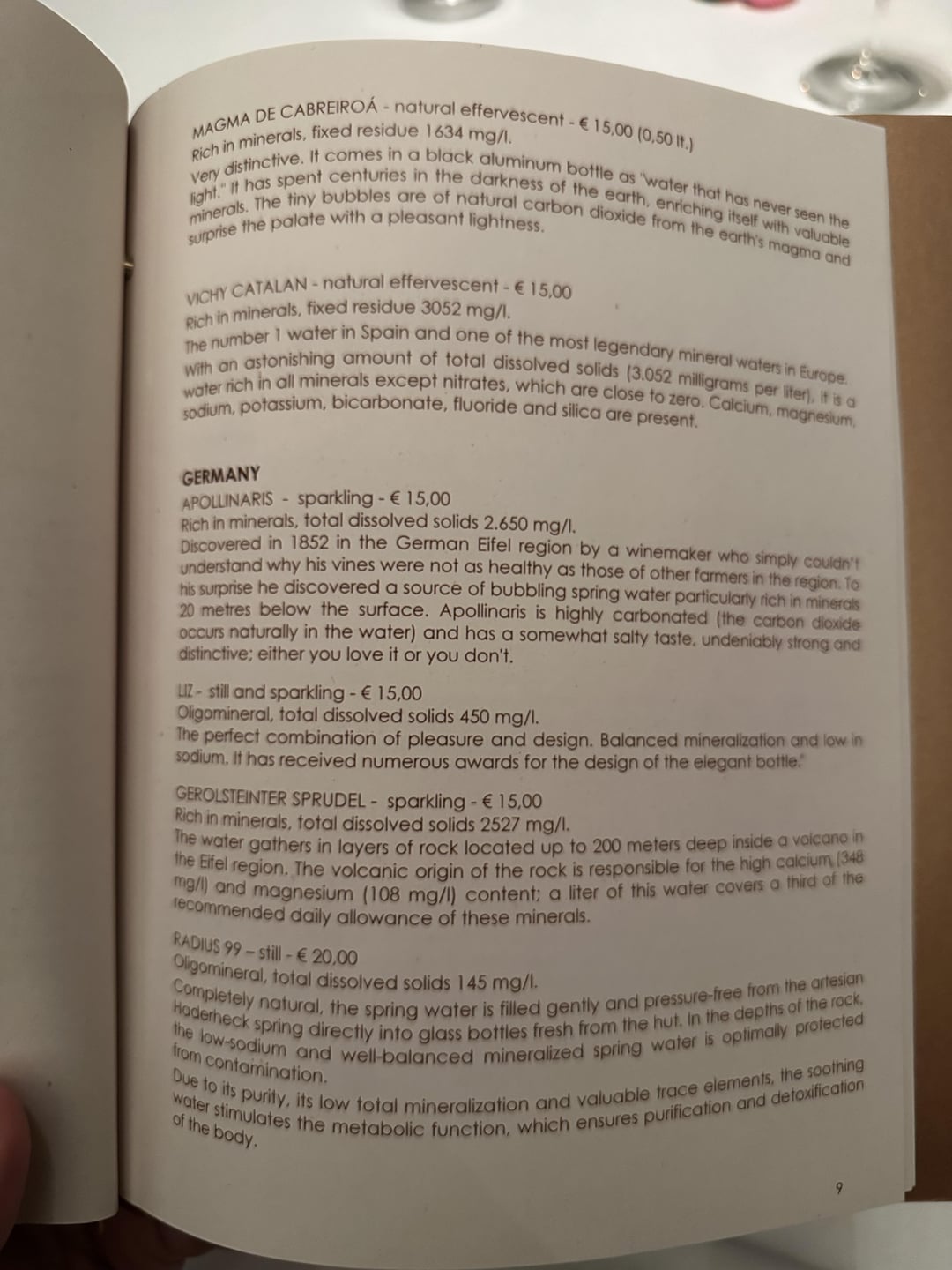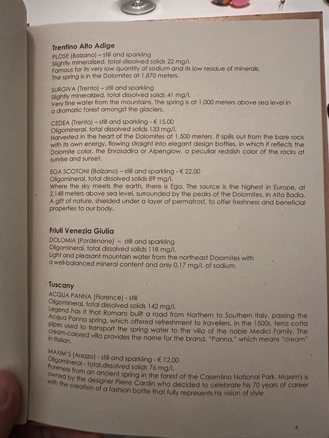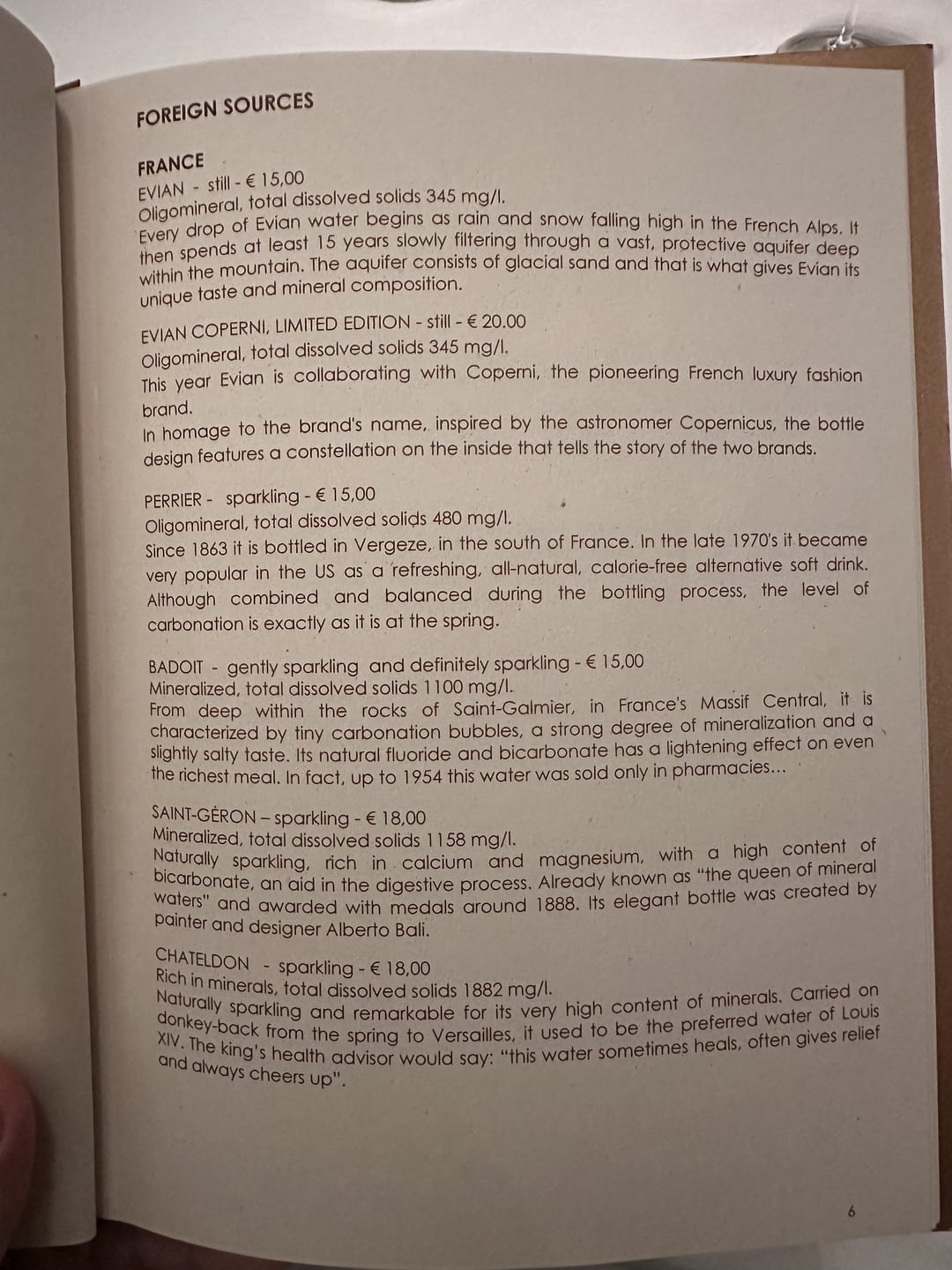 I shamelessly photographed every page of their water menu as I found it quite unique.