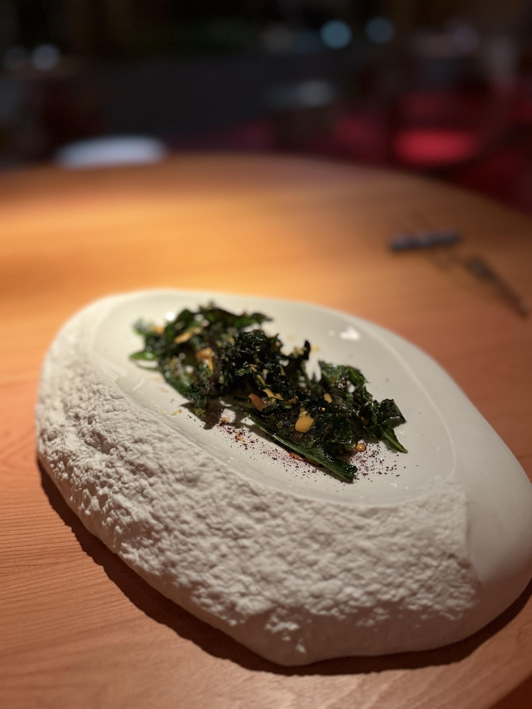 Insanely cooked pigeon with a bones sauce, with grated turbot liver on top and then a ‘seaweed pesto’ which was a menagerie of herbs you could use to create different flavour combinations.
