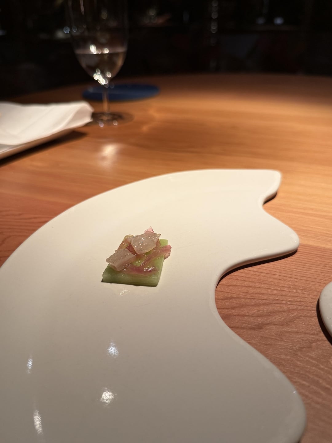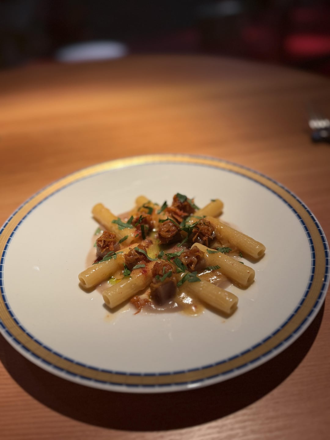 The best pasta dish I’ve EVER eaten. Tuna genovese with onion kimchi and basil oil. This was other worldly.