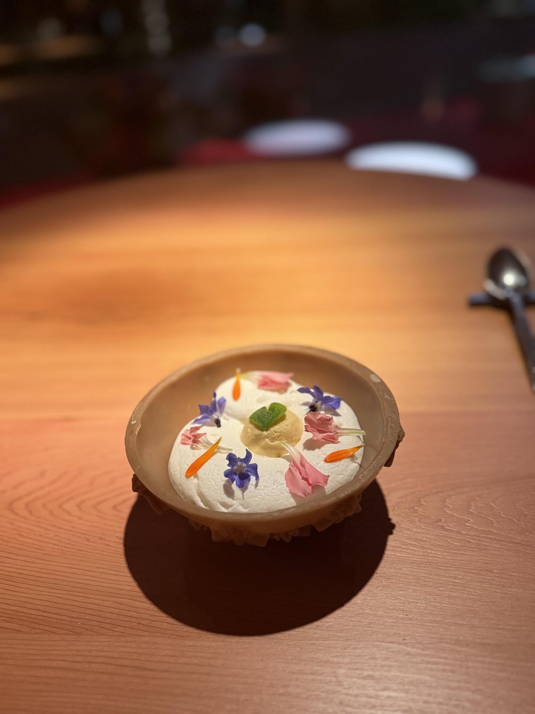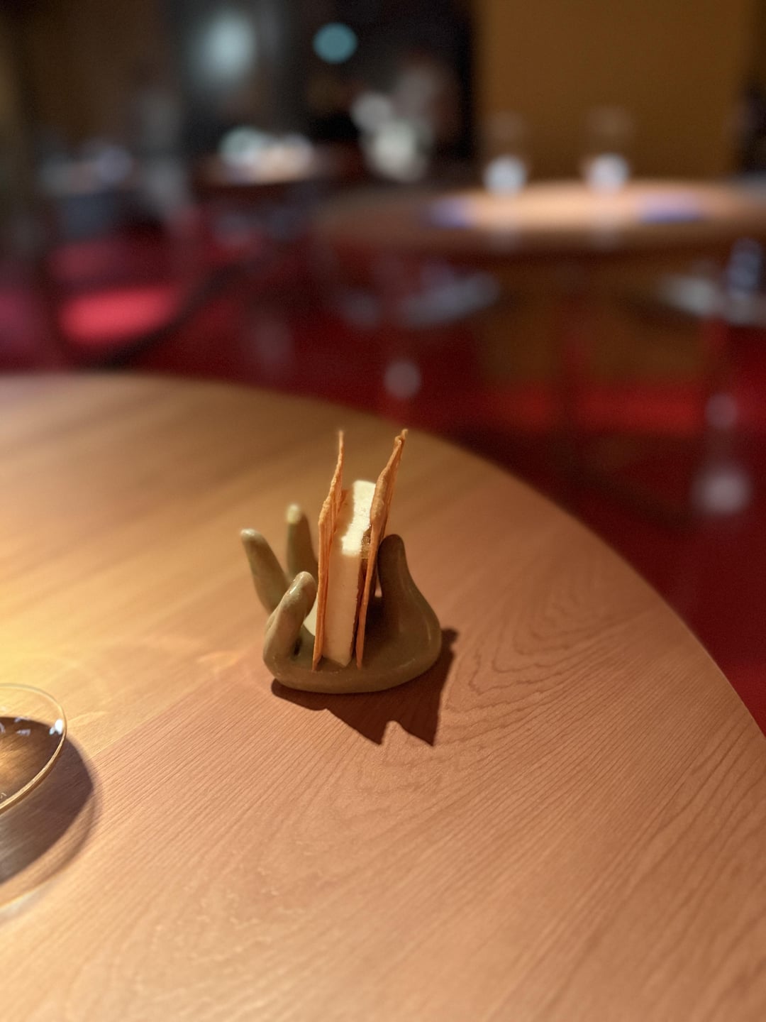 A Parmesan ice cream in Parmesan wafers as a tribute to Ferran Adria. Absolutely something Adria would serve. Superb.