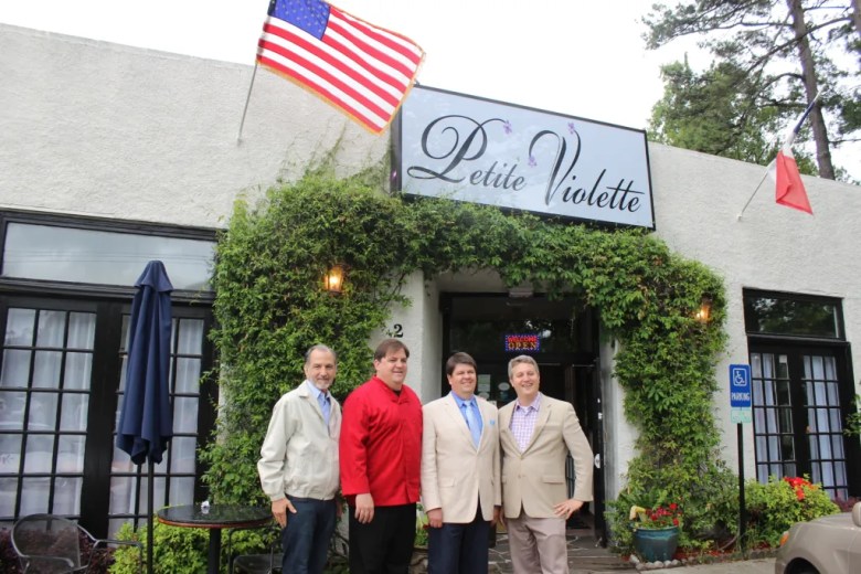From left: Former Brookhaven City Council member Joe Gebbia, owners Michael and Anthony Gropp, and former Brookhaven Mayor John Ernst at the 2017 grand opening of Petite Violette, 2948 Clairmont Road, Brookhaven. (File) Credit: Brookhaven Chamber of Commerce