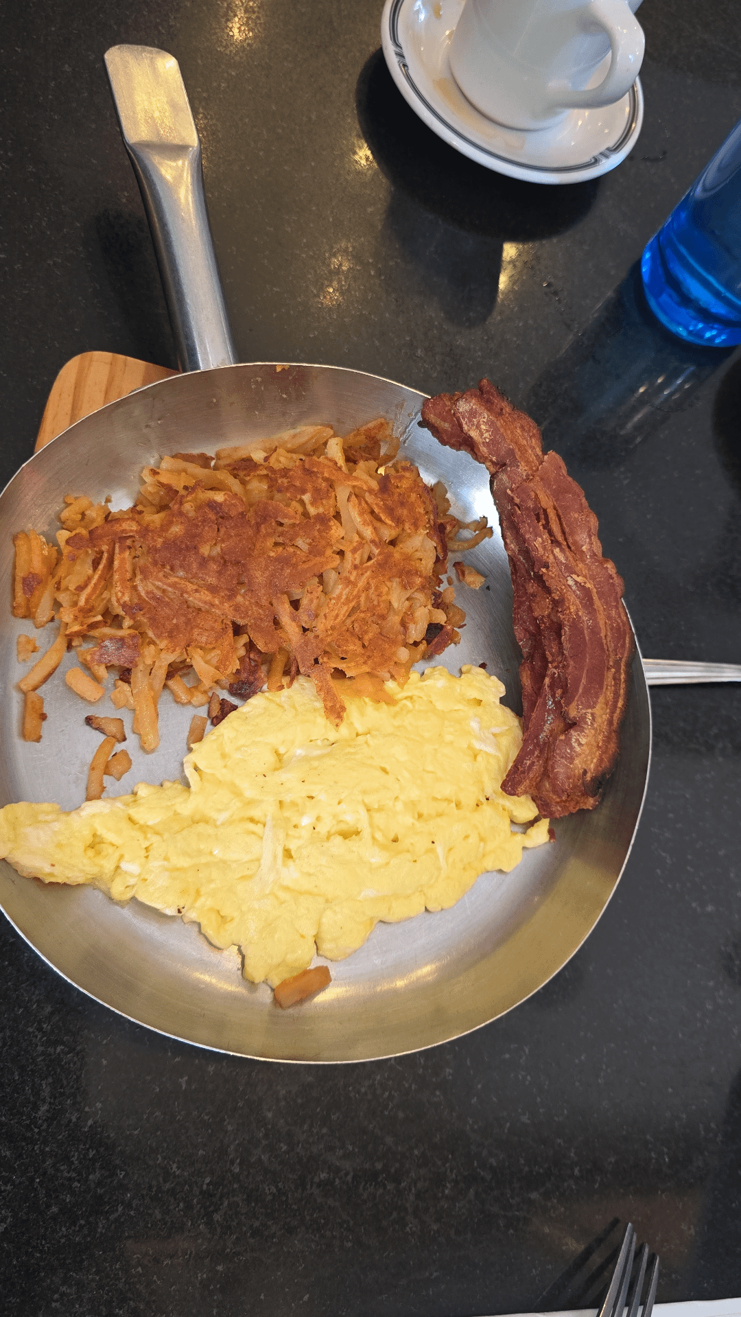 My only issue would be the sound of metal on metal while eating the eggs and hashbrowns, the bacon not so much since you can just pick that up with your fingers.