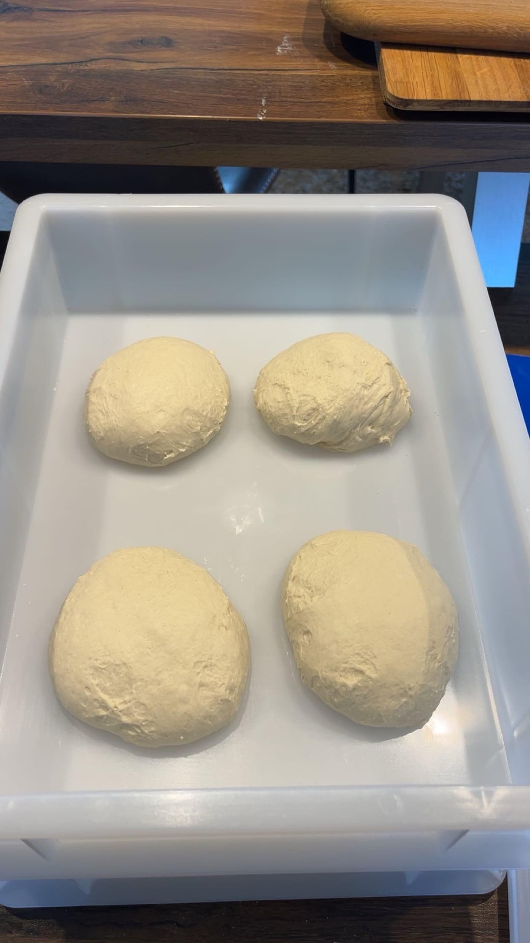 - Make 280 gram pieces and form those into little balls, doing some more stretching and folding.