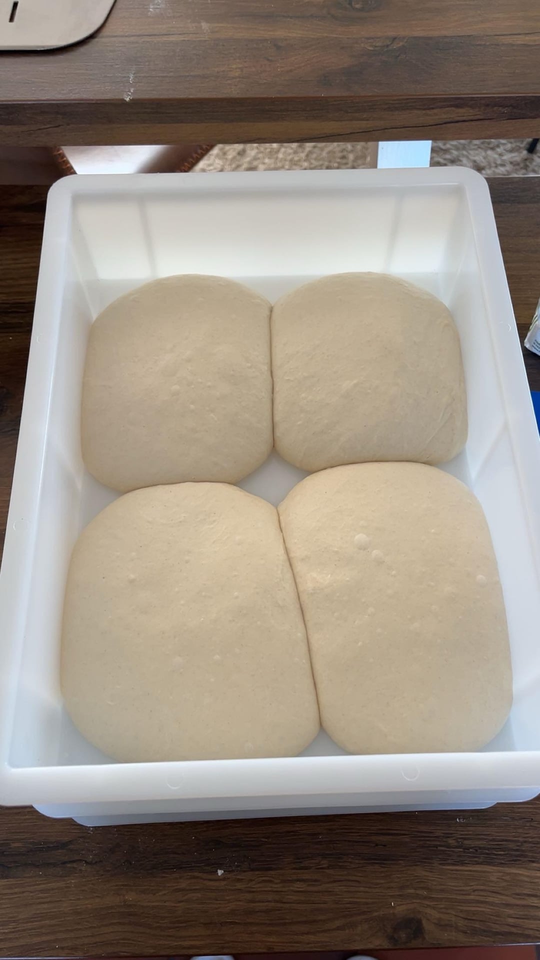 - After they have grown significantly in size, use a spatula and some semolina to get them out of the box without breaking up the air inside them (You want the air). Put them into a semolina-bed, turn them and onto the work surface they go.