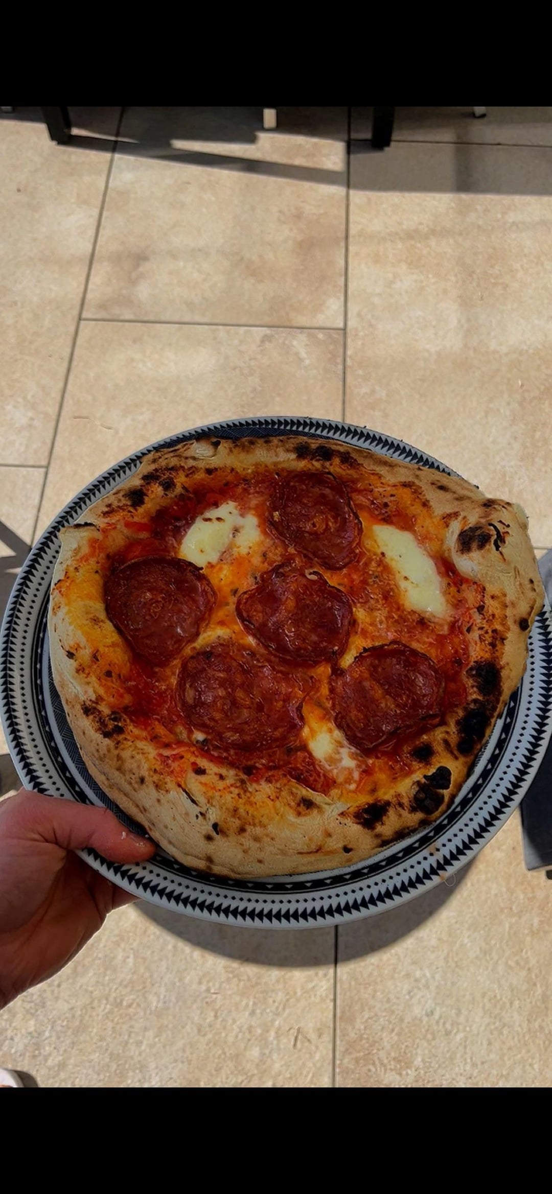 - l used a pizza oven pre-heated to 400 degrees C and baked them for no more than two minutes, rotating after the first minute using a rotating wheel. Make sure that after the stone has the desired temperature to turn the flame to low because otherwise your pizza will be burnt.