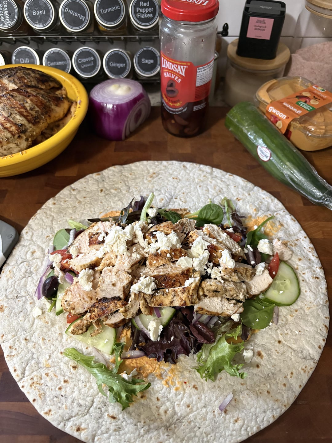 grilled chicken mediterranean wrap for my husband’s work lunch today