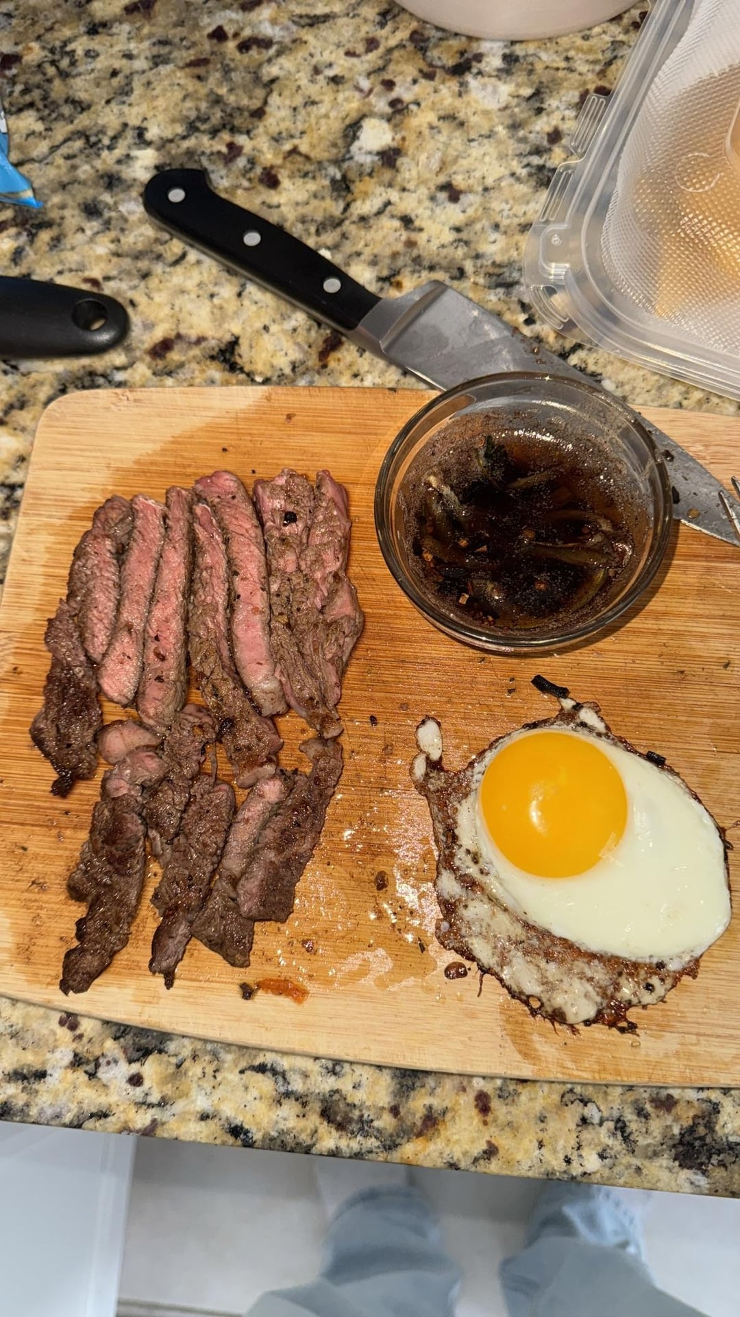 Some of yall are harsh af. My opinion is she’s gonna be impressed regardless just because you cooked for her. Steak looks good. Egg looks good. Sauce to dip steak in looks good. Again, just because you tried and cooked something should be enough but maybe that’s just me. Trial run i saw you say but definitely need a side or 2 and I would think you’re good to go (: