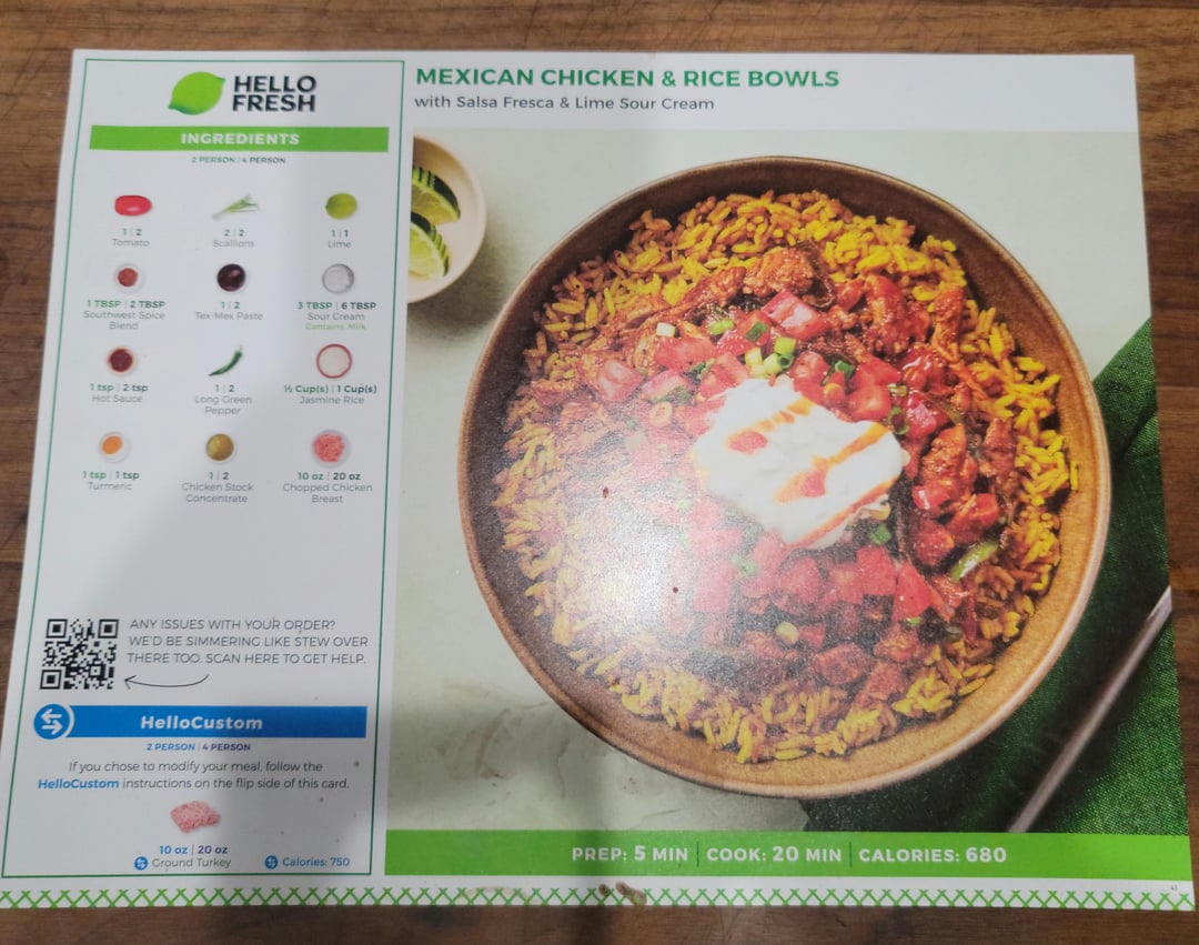 Modifications: I just skipped the optional hot sauce drizzle at the end and I added the extra turmeric they provided into the chicken.
