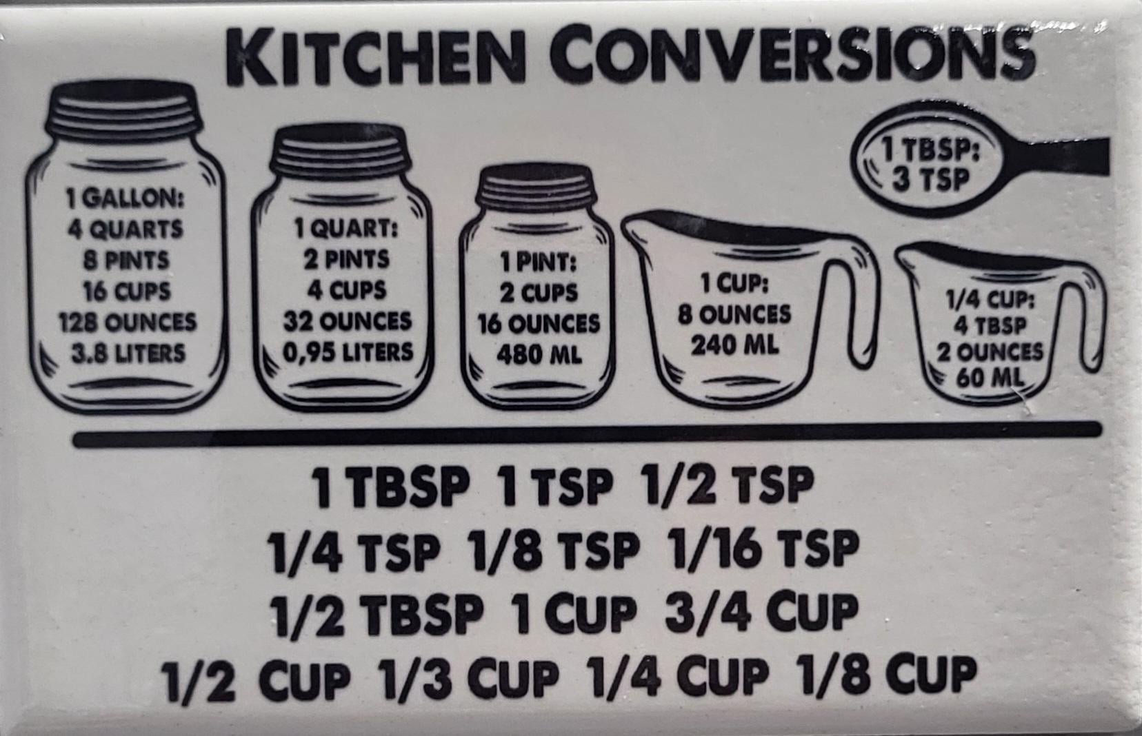 The bottom half serves as a quick cheat sheet for frequently used smaller measurements that might not always be on top of your mind when you are in the middle of cooking or baking. It helps you to understand how different fractions of teaspoons relate to each other, and common fractional amounts of cups and tablespoons. To me it makes no sense, but this was how it was explained to me.