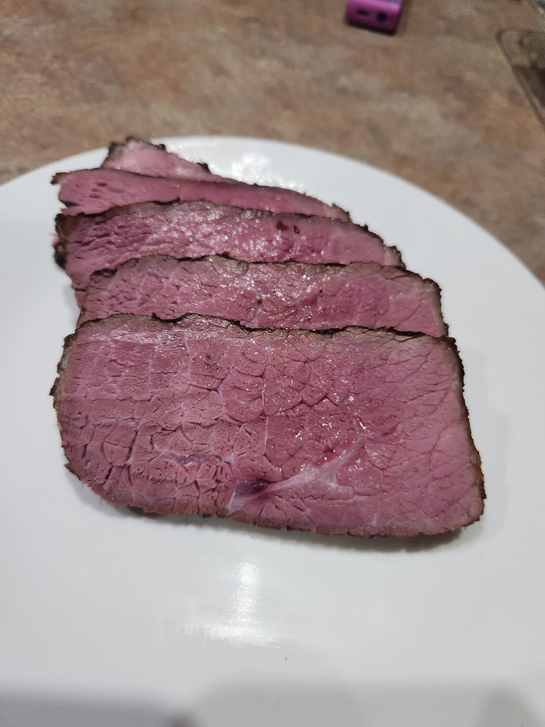 The cook was 25 hours at 130*F. The meat was tender, juicy, and delicious. Served beside Parmesan yukon golds.