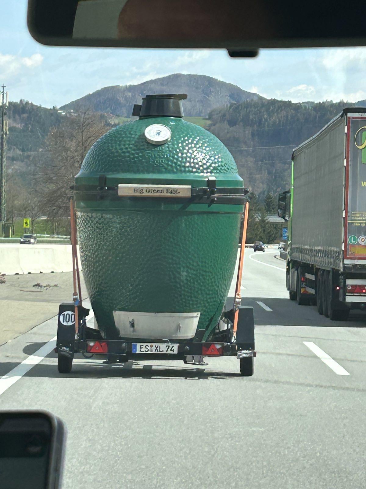 Numberplate looks German.. Also, my L has its own gravity field of its own..no way that trailer is able to hole that thing…. How much charcoal would it take??