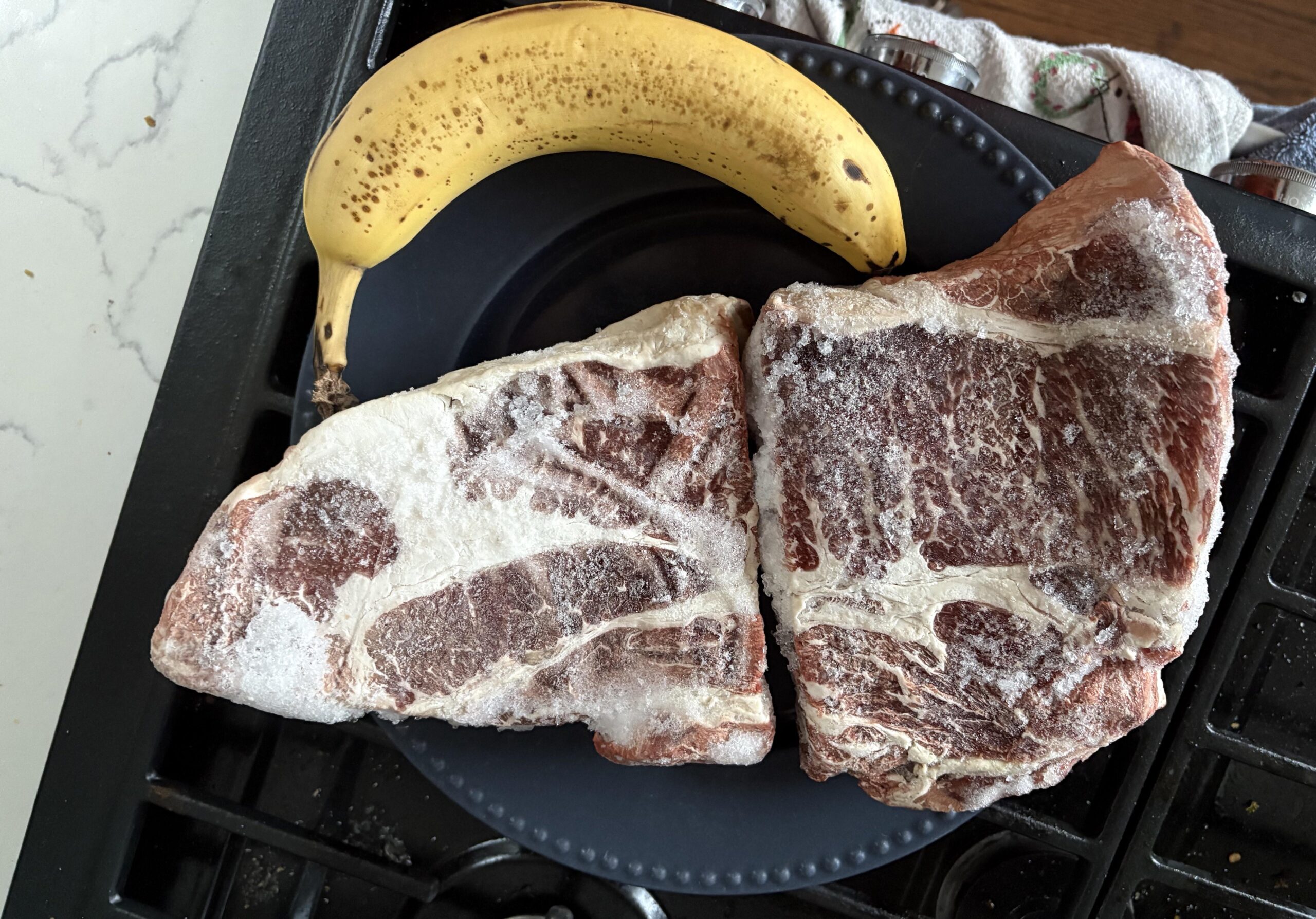 Banana for scaleby 1234golf1234 11 Comments ExtentAncient2812 12 months ago I’m going ing to say poorly cut Ny strip PorcupineFeet 12 months ago That is a chuck steak cut in half. Cocoa_Pug 12 months ago Sheesh that boy freezer burned Only_Project_3689 12 months ago Chuck…Looks like it has been frozen glitterysweater 12 months ago Looks like a shitty chuck steak. Super diminished chuck eye and a not too good Denver 2NutsDragon 12 months ago 7 bone Itchy_Professor_4133 12 months ago Banana Cleverironicusername 12 months ago Frozen chuck w/freezer burn. Braise only. makelefani 12 months ago I think that is called an arm steak. Zodep 12 months ago It looks like raw meat on a plate with a banana. MrBatistti 12 months ago Freezer burnt. Toss it, dude.Write A CommentYou must be logged in to post a comment.