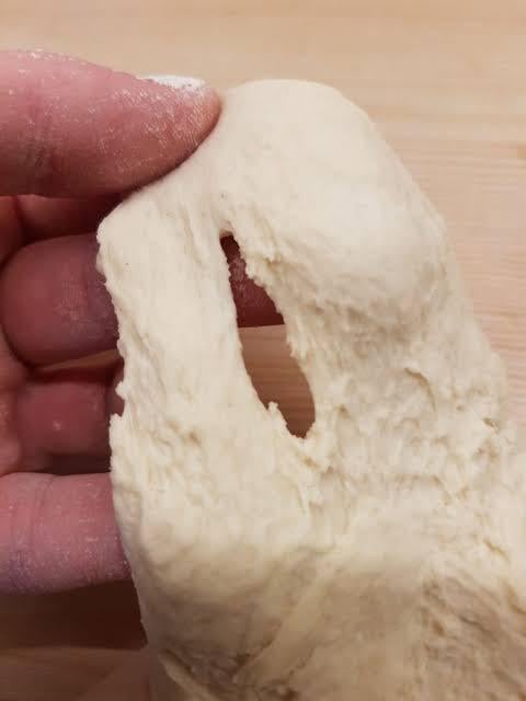 * Let it relax. Avoid over working the dough. If you work the dough before trying to stretch the gluten will tighten up and make it difficult to stretch.