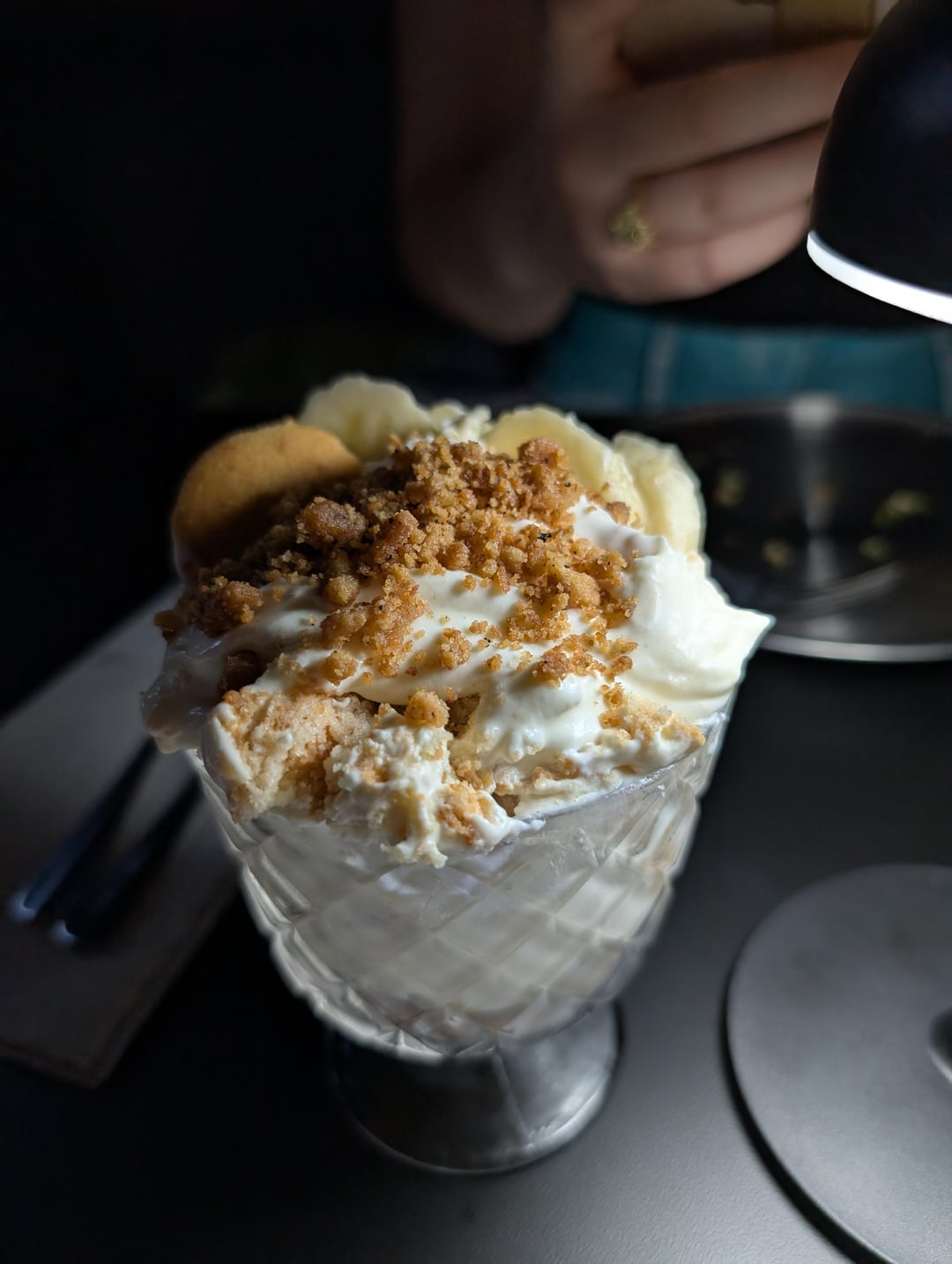 Pictured last is the banana pudding. As a Florida transplant I take nanner pudding very seriously, and this was top notch. It's on the cake- and whipped cream-heavy side, similar to Magnolia's pud if you've had it. Splitting a pie and a pud was perfect for the wife and I.