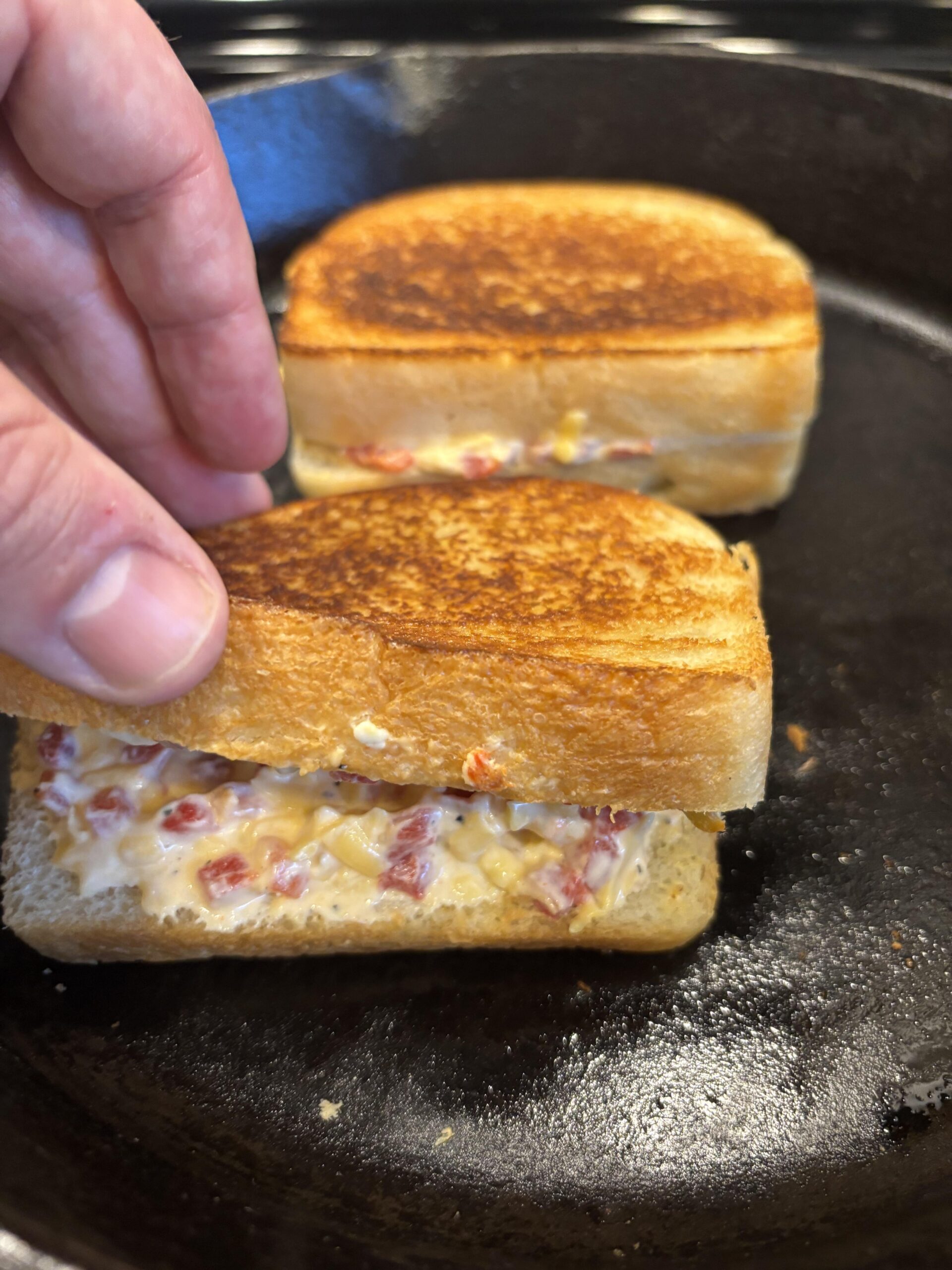 Pimento Cheese is shredded sharp cheddar, pimentos, mayo (Dukes), and hot sauce (Texas Pete for no heat or Louisiana or Crystal for heat). Crazy simple. Hot sauce is what makes pimento cheese taste like pimento cheese. Don’t get crazy, but it’s more than you think. Only add enough mayo to make it spread. It’s really easy to add too much. Past that, enjoy!