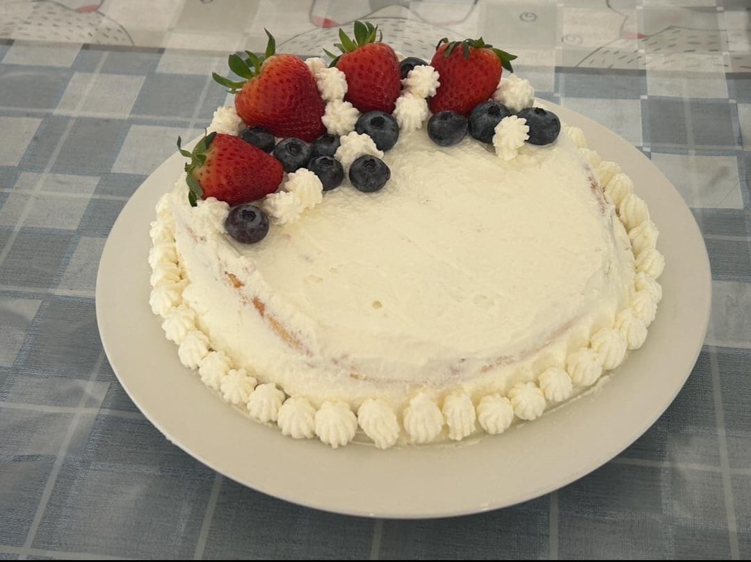 I like the berries and small buttons on the icing. It looks very nice decorated.