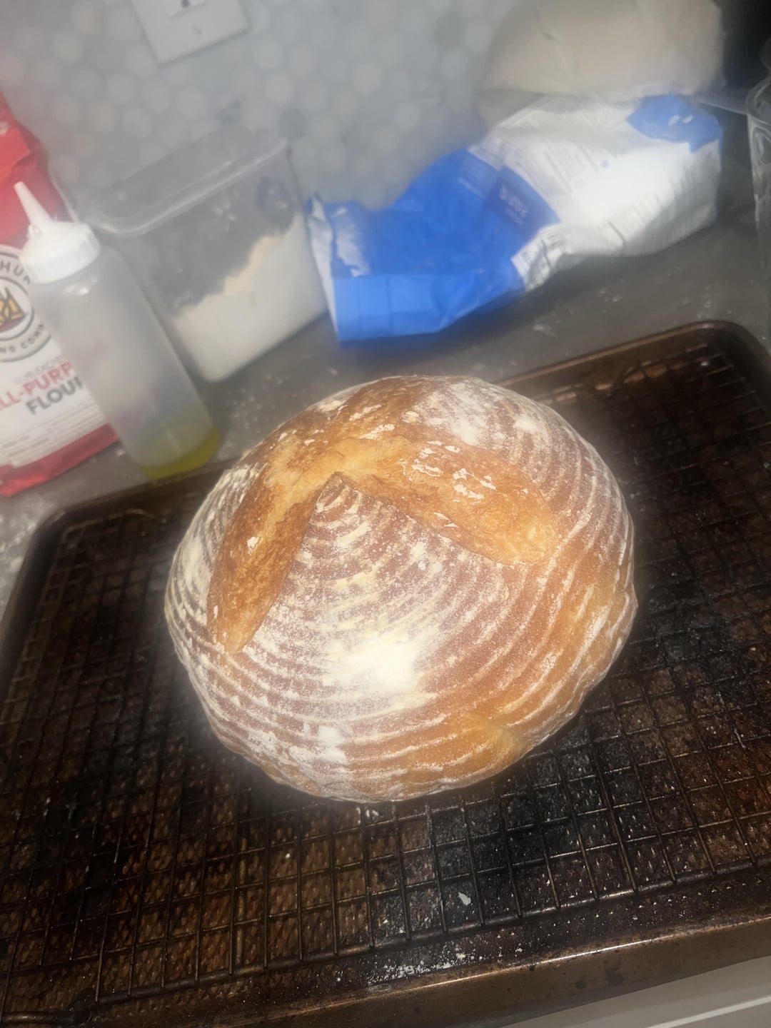 Didnt get quite the spring and crust separation i wanted, but delicious nonetheless. I cut it after about 30 mins so it was still hot, so the crumb coulda looked better lol