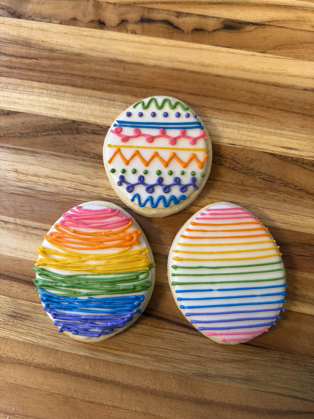 We decided to decorate cookies instead of eggs this year! Very happy with how most of these turned out. Also included is the work of my 5 year old, who loves watching cookie decorating reels with me ❤️ Happy (almost) Easter!