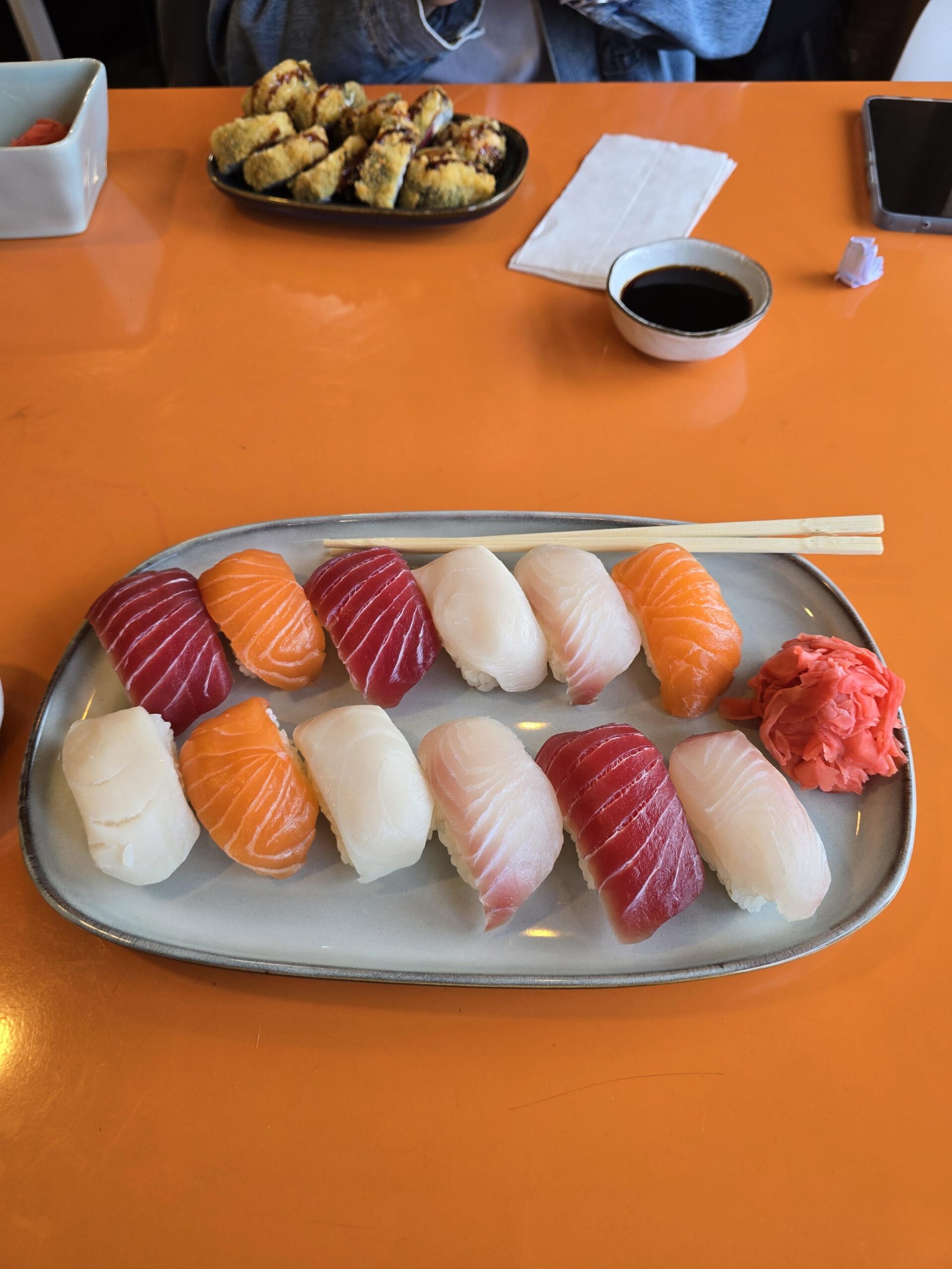 I think 3 dollars a piece is insane and I’m wondering why there’s a massive bowl of soy sauce….