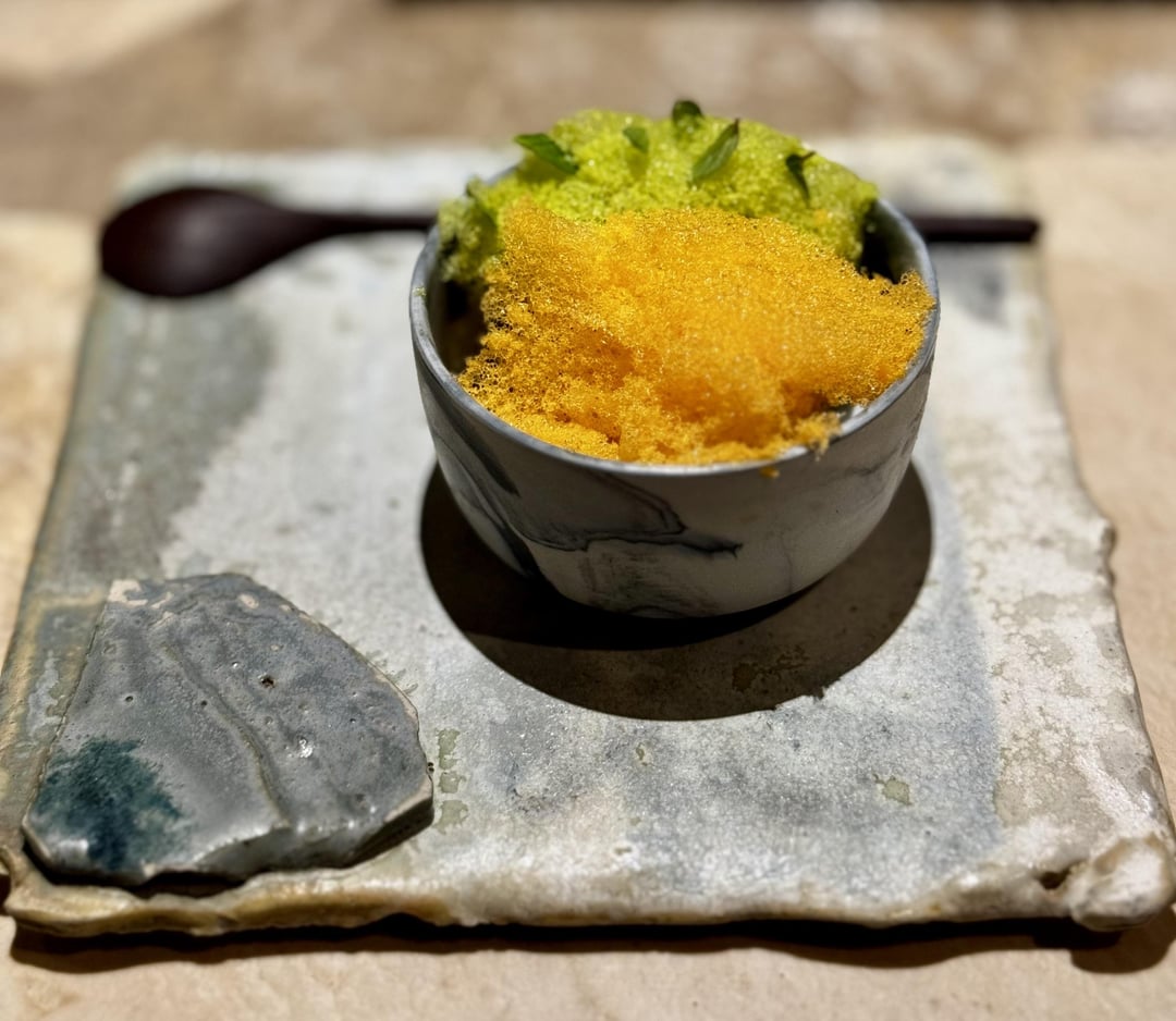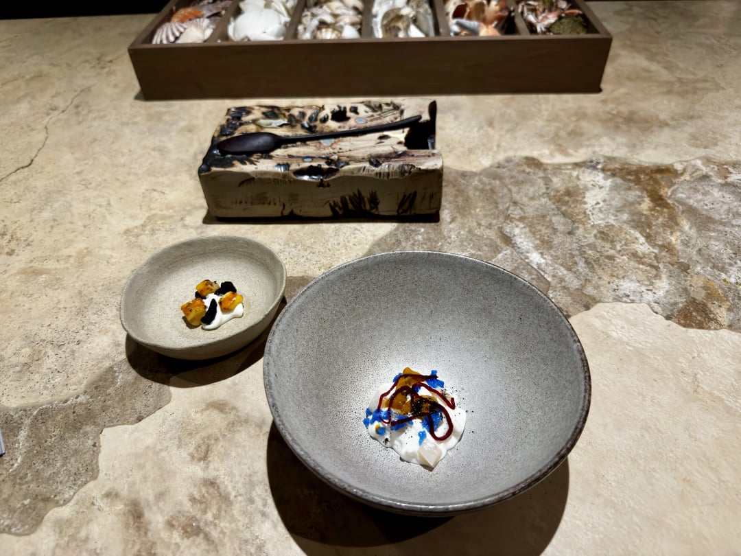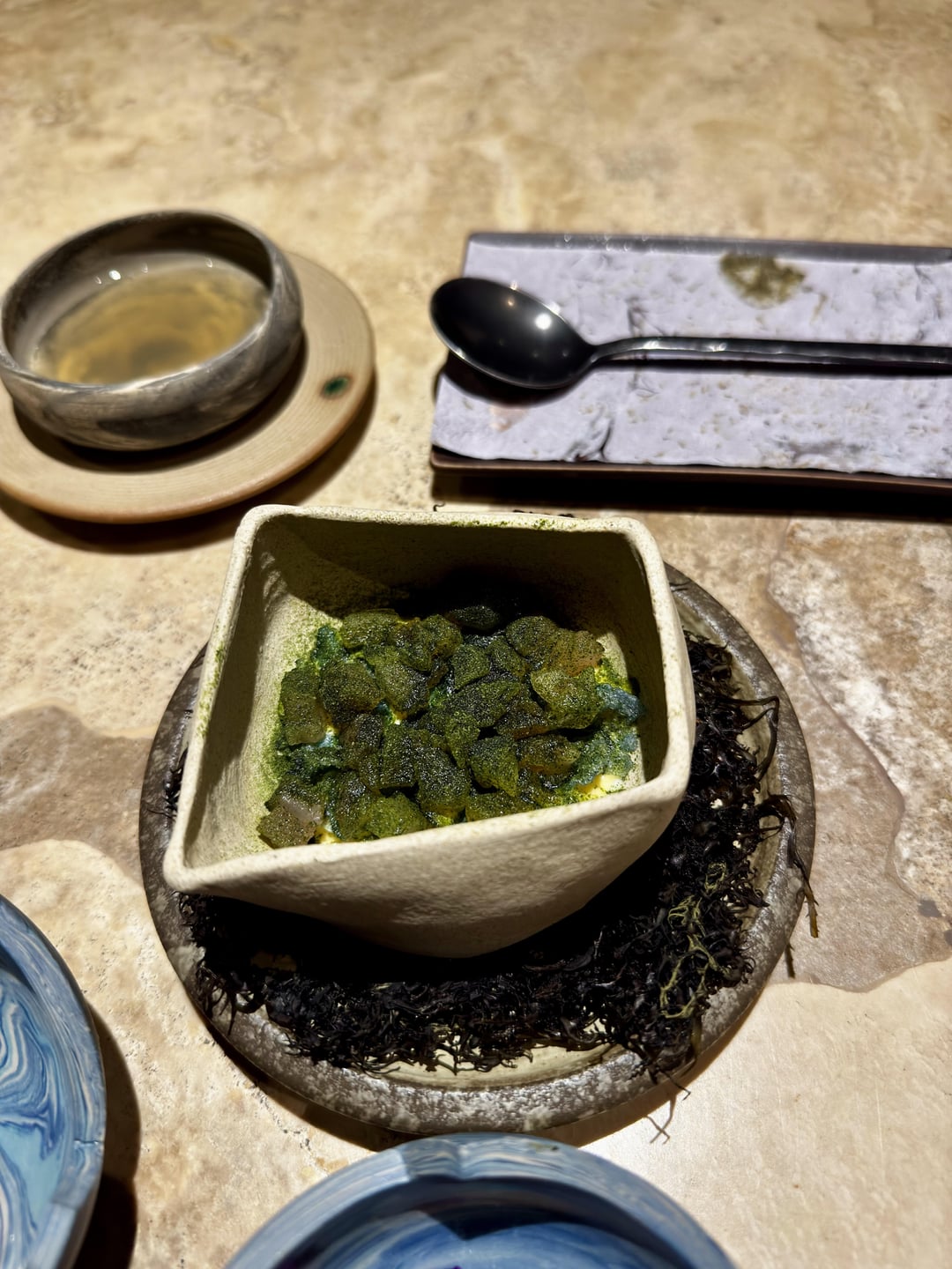 Service: Absolutely top notch! I would go as far as to say that it was the best service I have ever experienced. One example of this came when one of the courses had to be eaten with my hands. I pat wiped my fingers on my napkin, and less than 10secs later, my napkin was replaced. Another example was when I spilled a chive on the table, and it was cleaned immediately after my course was completed. I didn’t even realize I had spilled a piece of chive.