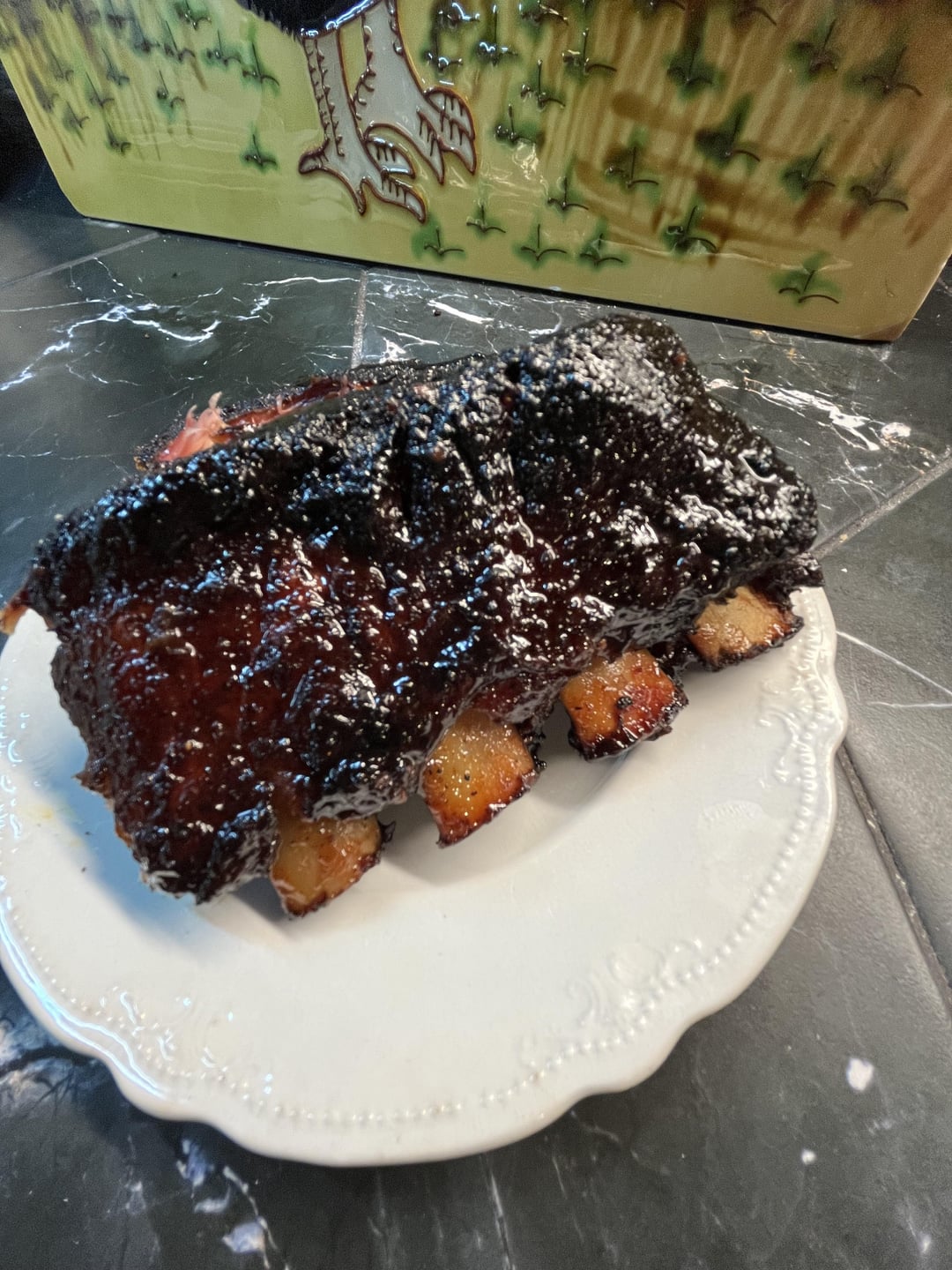 I used the 3-2-1 method, three hour smoke, two hours wrapped, one hour glazing in the smoker. They began to fall apart before I completed the whole cycle lol (it kind of ruined my presentation photo). These may have been the best ribs I’ve ever made. They were wonderful.