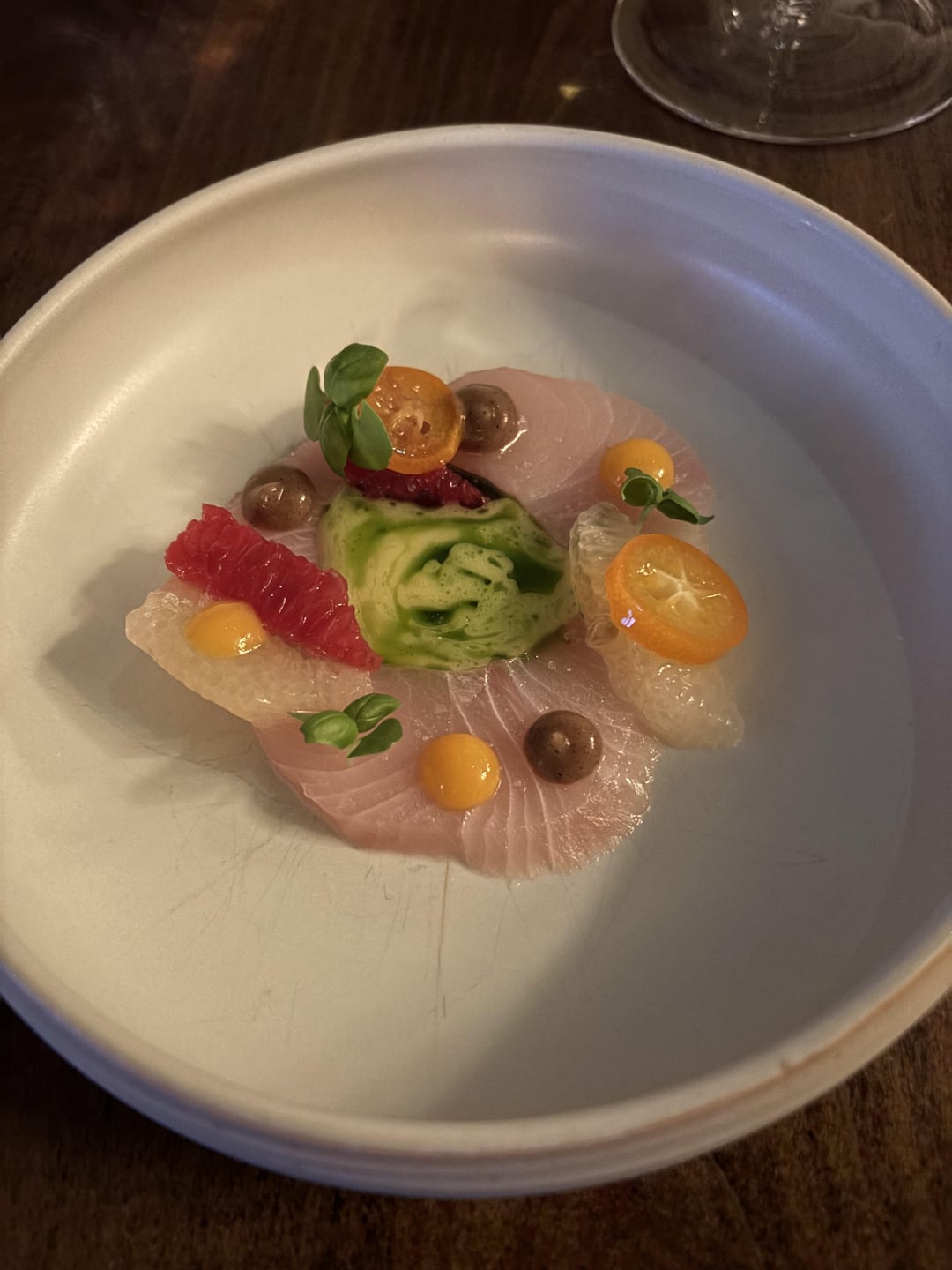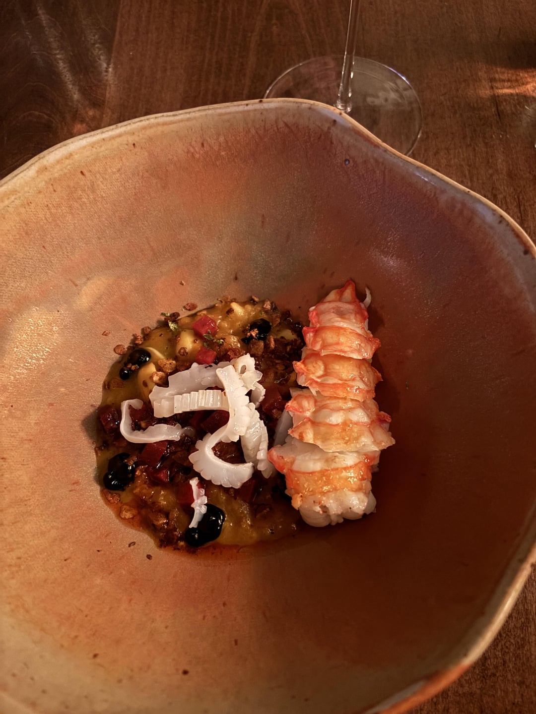 Very good dry-aged hiramasa with a refreshing citrus base, then arroz mariscos which tasted like the bottom of a pan of paella (in a good way). Crispy, crunchy, rich with strong chorizo along with squid. I added a langoustine which made it luxurious as well.