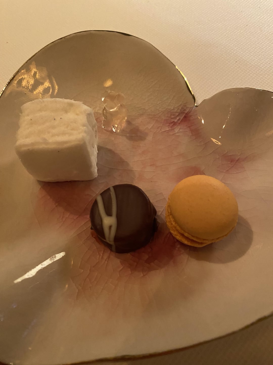 There’s a tiny dessert cart that comes around as well with lots of fun little bites that break down the overall very corporate atmosphere of the Trump Hotel mainstay. The macarons as well were delightful; The marshmallow, and champagne gummy bears were both very light and tasty and an excellent companion for a slightly drunk end of meal experience.