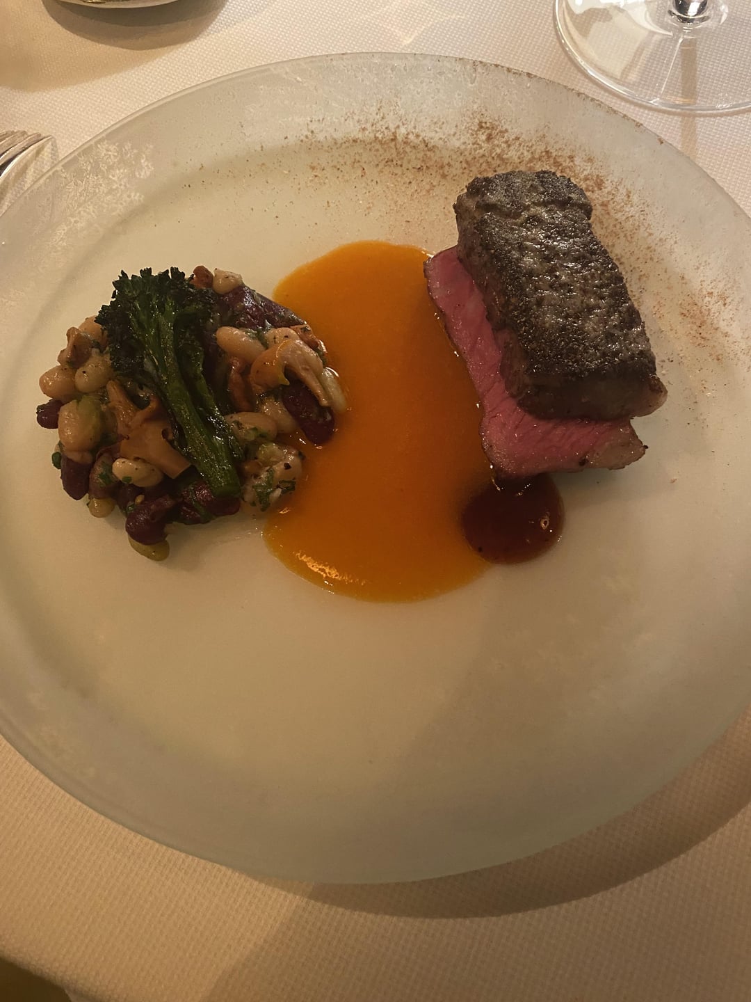 The filet mignon for the main meat dish was very classic and incredibly juicy and the sauces on the plate also enhanced it very nicely. The vegetable bean and nut mound was also very nice but I feel like something is missing in the presentation for this.