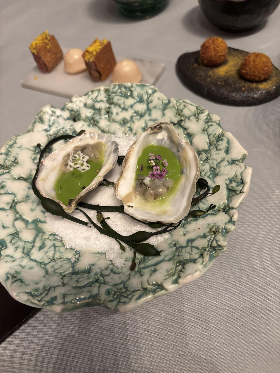 Next came an assortment of amuse bouche, most notably a beef tartare with a crunchy outside so you can hold it. All were good and each gave a nice pop of flavor.