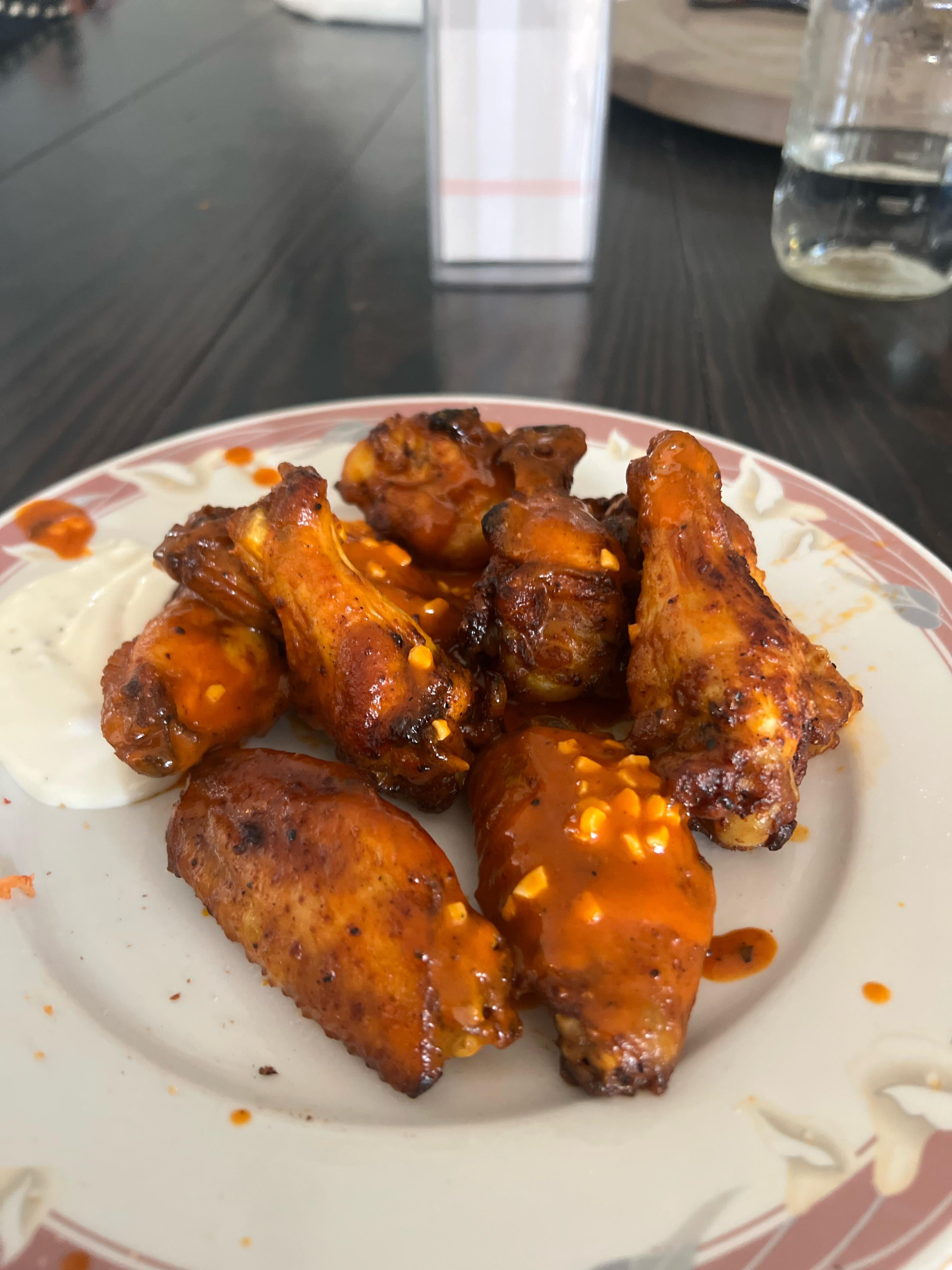 Around 50 minutes at 500 on a rack. No reason to fry. Franks’s,butter chopped garlic , sriracha and a few shakes of cayenne. Best wing sauce I ever made.