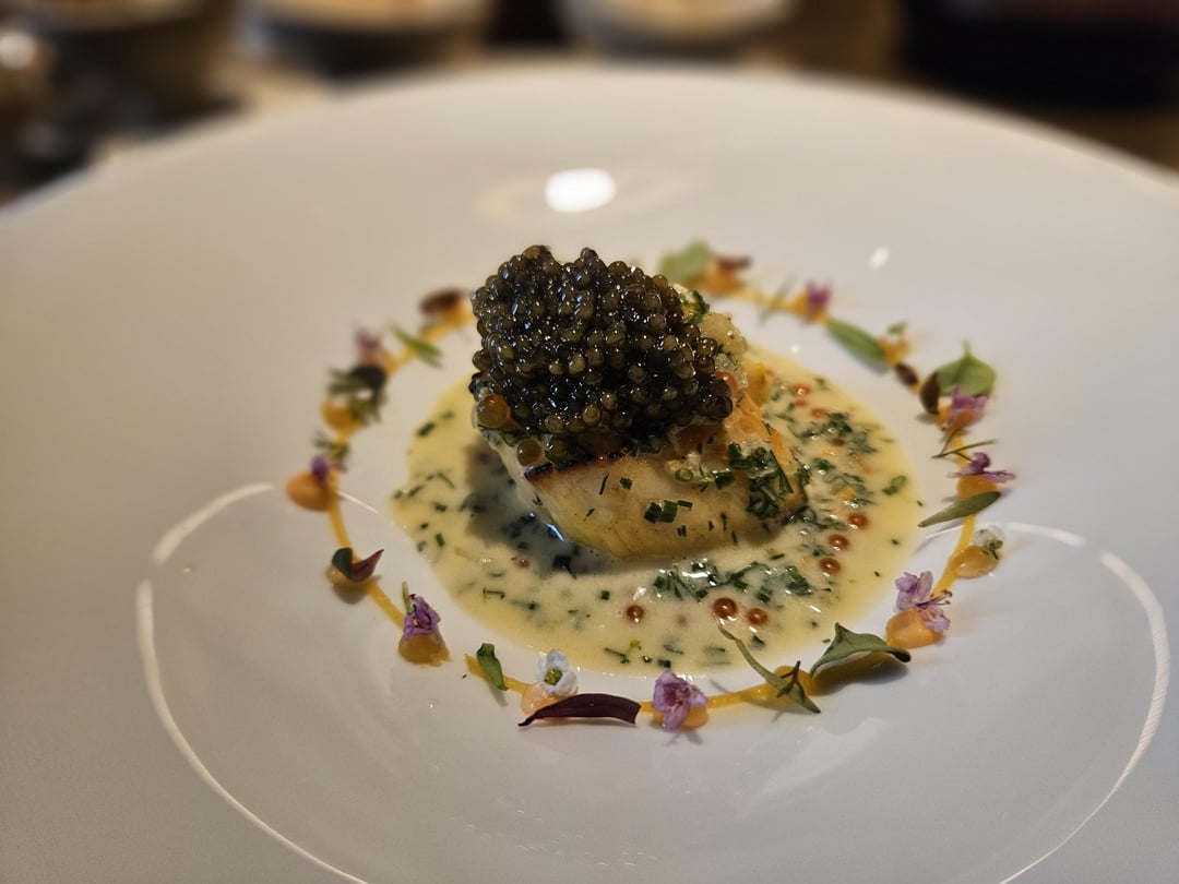 Cornish turbot with champagne sauce – cooked well but the flavours were a bit quiet. Not bad, just didn’t stand out. My wife got the lamb, which was definitely a lot better.