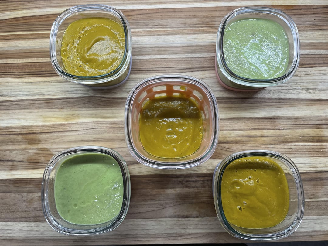 for meal three, i made asparagus and pea soup (https://minimalistbaker.com/creamy-asparagus-and-pea-soup/#wprm-recipe-container-35663) and carrot coriander soup (https://ohmyveggies.com/vegan-carrot-and-coriander-soup/#recipe).