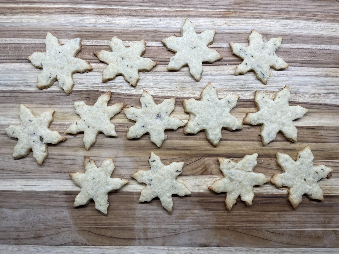 for a snack, i made matcha pistachio muffins (https://www.connoisseurusveg.com/green-tea-pistachio-muffins/#recipe) with added coconut flakes. i also made lemon thyme shortbread cookies (https://www.loveandlemons.com/lemon-shortbread-cookies/) because i had an extra lemon and thyme.
