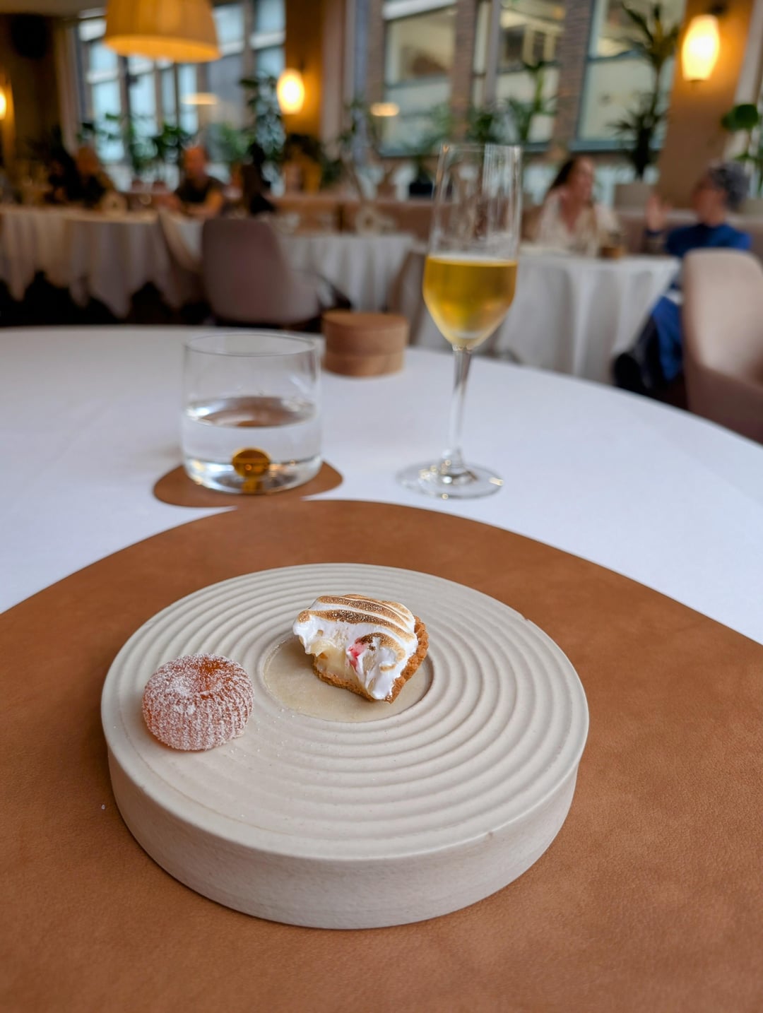 I tried the mignardises with Inniskillin Vidal Gold ice wine, a rich honey sweetness to round off the meal. (I did take a bite before a picture, and I'm not sorry.) The ice wine isn't part of the pairing, but I said I was interested in it and the som poured me a glass on the sly.