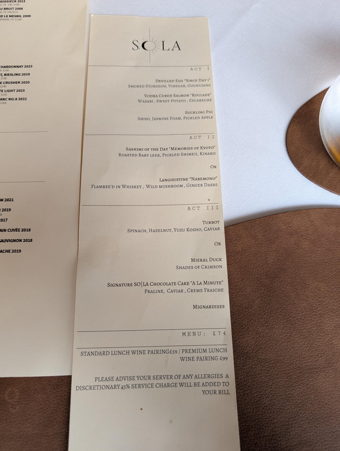 Given its location, it makes sense that they have a quicker pre-theatre menu. It comes in three acts followed by dessert and sweets, plus there's a four glass wine pairing.