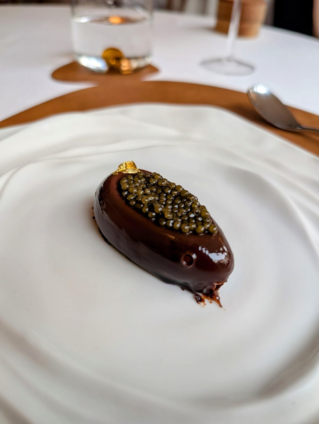 I know what you're thinking, they'll stick caviar on anything these days. I was sceptical but when I tried it it all made sense, we had salted chocolate all the time now and it worked in a similar manner.
