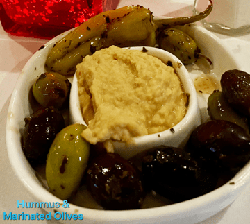 As soon as we were seated, our water glasses were filled and a complimentary basket of warm bread, hummus, sliced radishes, and green and black olives were placed on the table for us to share while our drink orders were taken, courteously we were given plenty of time to peruse the menu. There is a large, inviting, comfortable bar in Barka, which in post-pandemic times will once again clearly be a nice place to socialize, get together with friends, or just to enjoy a quality cocktail and a bite.