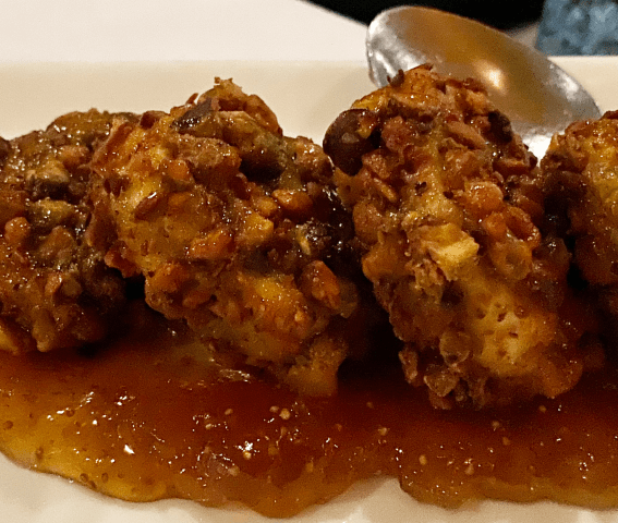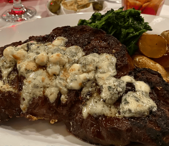 Despite Barka’s highly regarded reputation for serving exceptionally fresh seafood, which is delivered five days a week, and is known to be cooked to perfection, (including their immensely popular Wild Whole Branzino), I, along with my group decided on three different cuts of steak. I love fish, but being more of a carnivore, I could not resist the Blue Moon Rib-Eye special, a succulent, perfectly executed, properly seasoned, dry-aged, Rib Eye steak, pepper dusted and topped with melted blue cheese, accompanied with sides of fingerling potatoes, broccoli rabe, with natural au jus. A savory, mouthwatering, delicious cut of meat; juicy, moist, tender, and loaded with beefy umami flavor. I enjoyed every bite! Along with my steak, I managed to enjoy one of Barka’s well-made Bourbon Manhattan’s, my go-to libation.