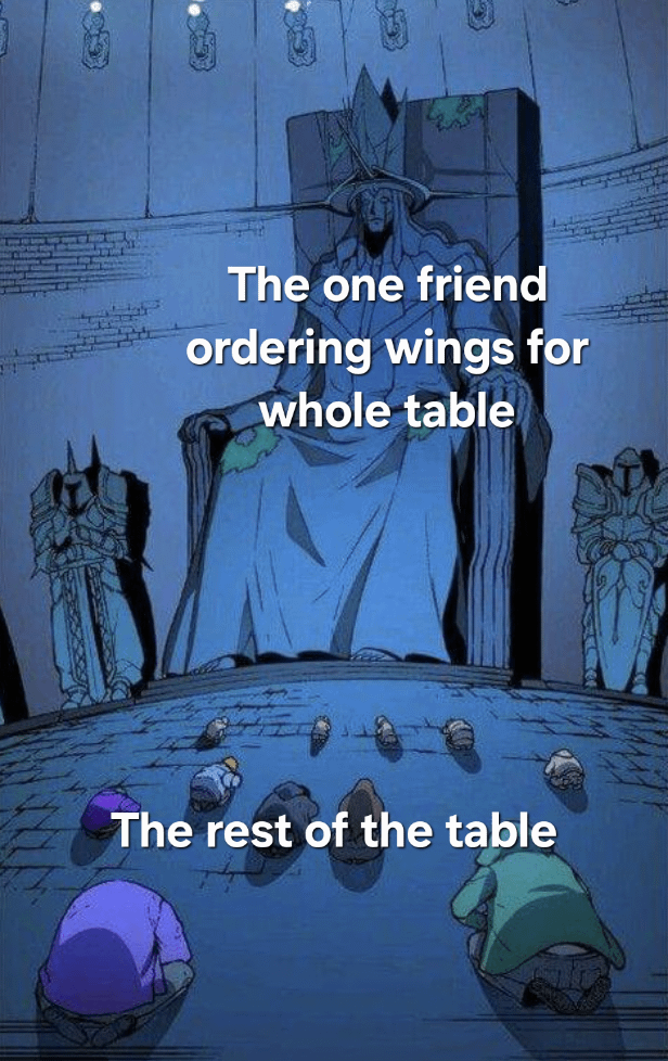 Me when I order 40 wings and have to awkwardly explain to the table that these are all for me.