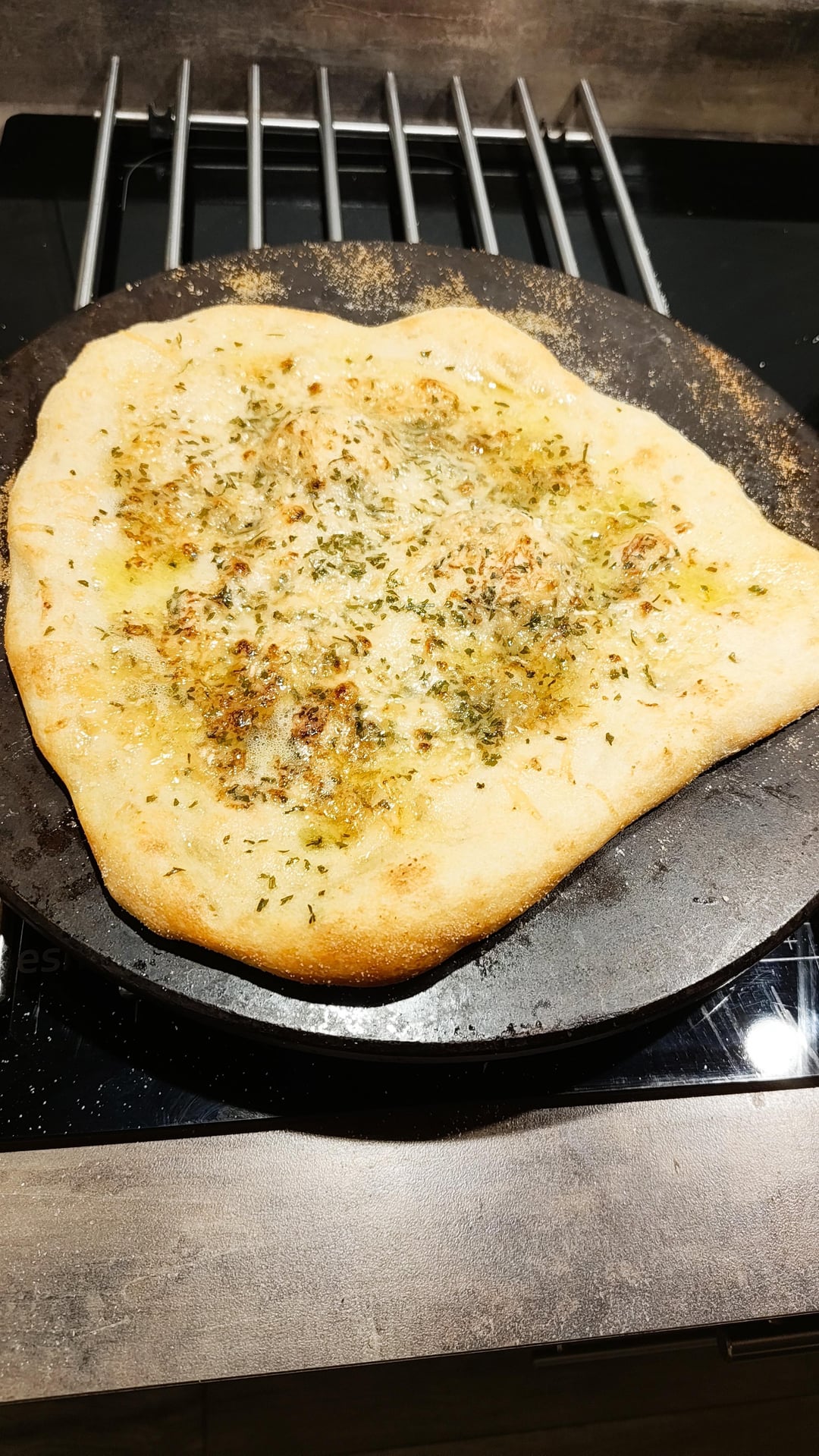 1: salami, 2: prosciutto with honey & sriracha and a cheesy garlic bread.
